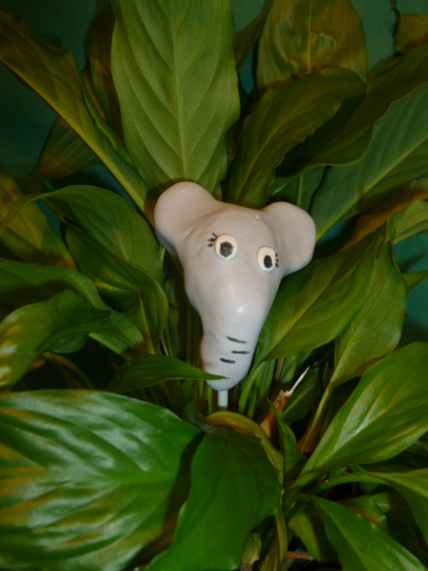 Bueeeno, para terminar con mi particular safari, aquí está mi elefante!!!. Muy de moda últimamente, por cierto. Confieso que probé a hacerlos de cuerpo entero y no me convenció del todo como quedaban (os pongo una foto), así que opté por las cabezas. Quedan muy expresivas, la verdad. La próxima vez haré también una elefanta rosa, que no sé por que no existen en realidad, serían monísimas!!!