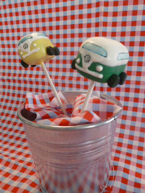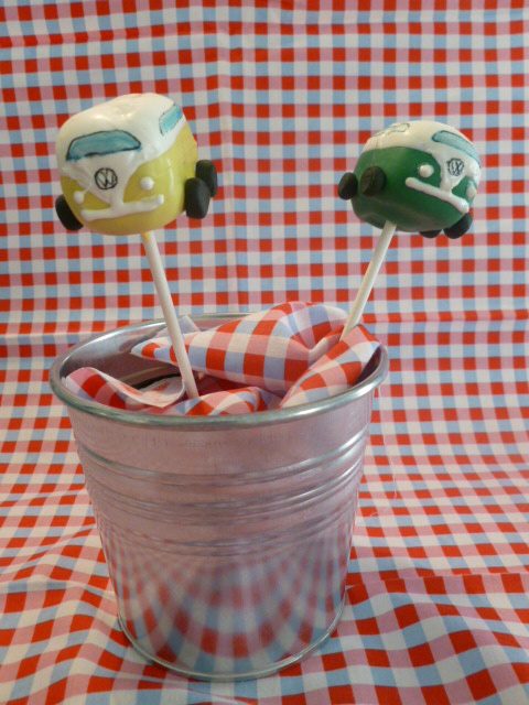 La verdad es que no me ha dado por llenarlas de flores y símbolos hippies, lo dejaré para las próximas. Como veis, estoy experimentando nuevas formas para mis Cake Pops. Siempre he dicho que en mi otra vida me hubiera gustado ser hippie, así que no podía dejar de hacer las clásicas furgonetas Volkswagen...son monisísimas!!!!