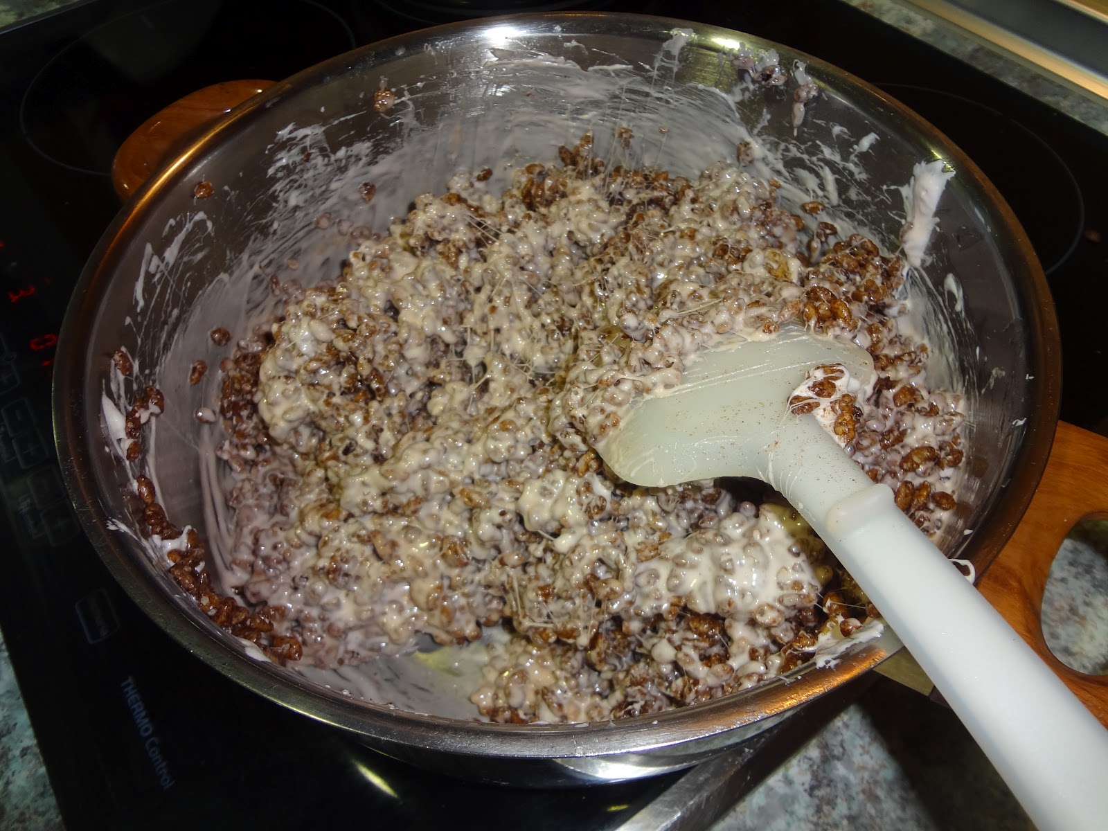 RKT Rice Krispies Treat Hola de nuevo... hoy con un pequeño tutorial o demostración de como hacer el RKT... hemos tenido un fin de semana movidito... nos hemos ido nada más y nada menos que ha San Sebastián, a dictar cursos de Tartas nivel I y II, modelado y cakepops, en el taller de Más que Cookies, donde Arantxa la anfitriona de porto como nadie... ufff nos fue genial... cansadas hasta llegar a calidad de "bultos"... pero muy felices por la buena aceptación y acogida que tuvimos... pronto repetiremos experiencia pero de temáticas navideñas !!! Ahora nos metemos en el tema de hoy... Que son los Rice Krispies Treats??? Es la combinación de cereal de arroz inflado, nubes (mashmallows) y mantequilla. Se usan en repostería para modelar figuras grandes ya sean muñecos, casas, muebles, balones, lo que se les ocurra. Y para evitar hacer cuerpos muy voluminosos que no pueda soportar un bizcocho. El RKT, nos servirá para dar soporte dentro de la figura que modelemos y así cuando la coloquemos en la tarta no esté tan pesada. Es muy fácil de hacerla, aquí tienen la receta. Ingredientes: 50 gr. de mantequilla 250 gr. nubes (mashmallows) 650 gr. arroz inflado (rice krispies) En una olla grande a fuego lento fundir la mantequilla Agregar las nubes y con una cuchara de silicona mover hasta que se derritan. Después agregar los krispies Revolvemos bien para que se integren completamente. Esta mezcla quedará muy pringosa pero para que no se pegue tanto en las manos, usa un poco de manteca vegetal (crisco). Apartar del fuego y enfriar en papel de cocina. Cuando ya no queme en las manos podrémos hacer la figura que queramos. En éste caso hicimos un cuerpo con forma de pera y una cabeza . Estas formas tendrás que moldearlas un par de horas antes o de un día anterior mejor todavía. Porque suele expandirse hasta que no se enfríe por completo. Dependiendo de la figura a diseñar puedes usar algún embace si le quieres dar alguna forma especifica. Por ejemplo queremos hacer un corazón muy grande, podemos meter esta mezcla dentro de algún molde en forma de corazón, previamente cubierto con mantequilla y vamos presionando hasta ver que no pierde su forma. Se deja enfriar un par de horas, para desmoldarlo. Recomendaciones: Apretar la figura con las manos 2 o 3 veces con intervalos de 15-20 minutos, para ir comprimiendo el arroz. Rellenar huecos con fondant o pasta de goma como resanando la figura para que quede lo más lisa posible. También se puede lijar y luego cubrir con buttecream. La misma técnica como si forramos una tarta. Pero a nosotras nos gusta más resanar con fondant y dependiendo el caso se ponen dos capas de fondant, la primera muy delgada. Si vas a modelar cabezas, es importante que des 2 capas de fondat con CMC, pasta de goma o lo que estés usando. Recuerda que la Cabeza tendrá que quedar mas pequeña porque después aumentará su tamaño. Puedes guardar el RKT sobrante en una bolsa bien cerrada de plástico y en cuanto la vuelvas a usar, métela al micro unos segundos para poderla amasar de nuevo. Esta fácil no??? Si tenéis dudas, por favor nos escriben... El jueves el ganador o ganadora del sorteo... ya están las fechas publicadas de nuestros cursos de junio y julio... Estaremos por Valencia.... http://www.decorartartasycupcakes.com/p/cursos.html Este es el resultado final !!! dará pena comérsela. Hasta la próxima.