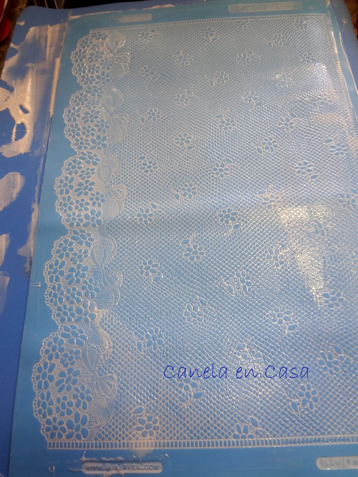 Ya faltan pocos días para que llegue el veranito !!!... y la operación bikini no sabemos cuando la empezaremos formalmente... entre tanto dulce la fuerza de voluntad es medio escasa. Hemos hecho una apuesta entre las dos a ver quien baja unos kilitos más rápido, esperemos se vayan dando cuenta ustedes quien va quedando más guapa. Si es posible que nos presionen de vez en cuando jejej... en vez de llamarnos "guapas".. nos digan "gordas".... uff suena feo, pero algo debe hacernos reaccionar... no creen !!! Porque sino, nos saldrá un viaje a Venezuela con la excusa de que haremos un mega curso "reposteril" y lo que nos haremos será una "lipo" de esas que te dejan de concurso... si ven que nos perdemos tres meses puede ser eso jejej Que nos enrollamos y nos salimos del tema... Para variar más dulce, es que no sabemos hacer otra cosa últimamente... Hace tiempo como más de un año descubrimos por Internet una técnica hermosa y maravillosa para decorar galletas, tartas, etc. Y vimos que aquí en España no vendían nada para poder hacerla, así que lo dejamos tal cual lo encontramos... es decir en la web. Cual es nuestra sorpresa en el Sugar09 pasado, que lo estaban vendiendo en La Sorpresa de Clara. Y sin pensarlo nos lanzamos a comprarlo... tenemos que decir que no es nada barato, es lo que tiene tener dos bolsillos o dos compis para que duela menos... Pero entre una cosa y otra nunca lo hemos usado para nada en concreto, sino para practicar y hacer desastres en la cocina... Hace unos días vimos que las megas blogeras Miriam y Estíbaliz de Mensaje en una Galleta, lo mencionaban y pues nos acordamos del famoso polvo blanco con el tapete más caro del mundo mundial, que estaban solos y abandonados en un cajón... Decidimos probar de nuevo, aunque es difícil al principio a la tercera va la vencida!!! Aquí les explicamos a nuestra manera de entender un paso a paso de como lo hemos hecho... Primero que nada, aquí le damos el enlace de quien lo invento y sale algún tutorial. www.sugarveil.com ¿Qué es el SUGAR VEIL? EL SugarVeil, es un polvo blanco, parecido al Icing sugar que básicamente está compuesto de azúcar glass además de (clara de huevo deshidratada, maltodextrina, fécula de maíz y goma de xantana). En el sobre salen las instrucciones de uso, del cual nos basamos. Lleva su truco, porque depende del clima donde estemos seca más rápido, se puede resquebrajar muy fácilmente o no secar del todo. Los Materiales necesarios para hacer esa bellas formas, estilo encaje son: 1 paquete de Sugar Veil aprox. 142 gr. Mantel de silicona que tienen las formas de encaje (Marca sugar Veil), hay que probar si vale la del chino, porque es caro. Tabla espátula (Sugar Veil) Espátula de silicona, Pañito húmedo. Pasos: También puedes usar el peine para crear listónes y lazos. Agregar el contenido de un paquete con 1/2 taza de agua hirviendo e inmediatamente batir a velocidad alta por 4 minutos. Tendrás que dejar reposar esta mezcla durante un día a temperatura ambiente y bien tapada. Al día siguiente extender un poco de Sugar Vail en el mantel con textura y quitar lo que sobra con la espátula grande (como si estuviéramos raspando algo). Se deben de rellenar todos los espacios de mantel texturizado. Dejar secar entre 30 min o toda la noche dependiendo la humedad. (Entre más humedad más tiempo de secado). Allí radica el problema, saber cuando está listo, porque se puede secar y se parte al querer sacarlo. Cuando veamos que se despega del todo del mantel. Que el producto está firme y seco al tacto, pero flexible. Y se separa facilmente de la superficie, es que ya está listo. Para despegarlo, voltear boca abajo el mantel y ayudarse con los dedos para separar las orillas y el resto lo despegas con la espátula grande. Enseguida recortar y hacer las formas que queramos, lazos, flores, encajes, etc. Para adornar tus galletas o tartas. Se pega con glasa, pero no que este muy húmeda. Es decir colocamos el puntito de glasa, esperamos dos o tres min. y colocamos el Sugar Veil, es que se puede disolver con mucha humedad. Hay que tener en cuenta que es azúcar y al contacto con la humedad se disuelve, de sabor es aceptable, no es muy dulce. Si nos sobra algunos retazos, los podemos guardar en una bolsa bien hermética, estilo las de las hojas de azúcar, para que no se seque. Allí seguimos con el experimento a ver cuando tiempo duran "bien" dentro de la bolsita... ya les contaremos... Éste fue el resultado de la 3ra. vez que probamos. Esperemos les haya gustado... sabemos que es un producto no muy comercial, pero para aquellos que les interese pues ya tiene algo de donde comenzar. Se agradecen los comentarios de sus pruebas, entre todos aprendemos y posiblemente den con algún otro truco que no hemos dado nosotras... Pero el acabado es muy bello. Para tartas de bodas, comuniones, estilos más clásicos esta genial... Gracias por estar al otro lado !!!! Yine e Ilsa.... Y no de olviden de ver quien esta bajando más rápido de peso jejeje