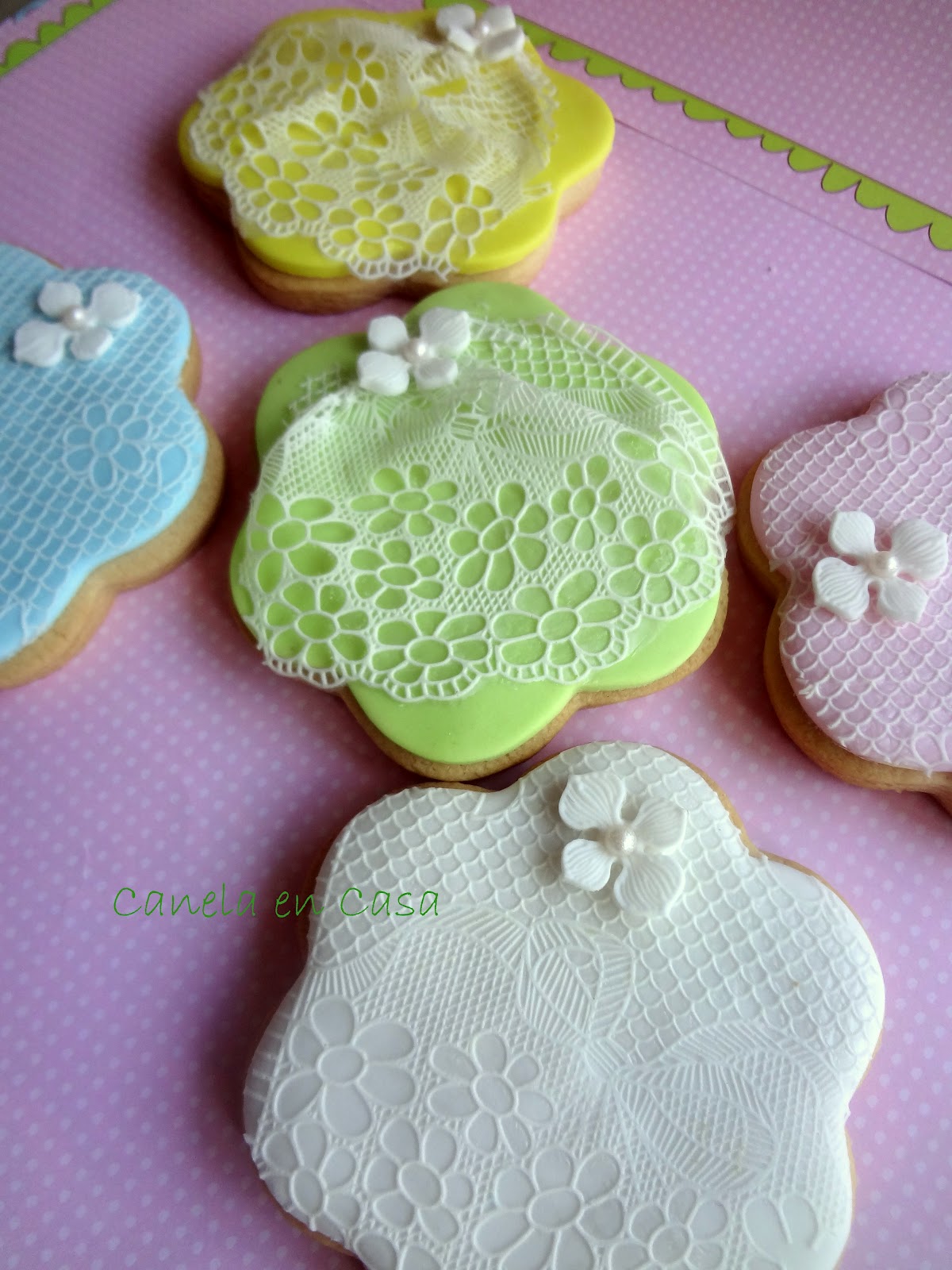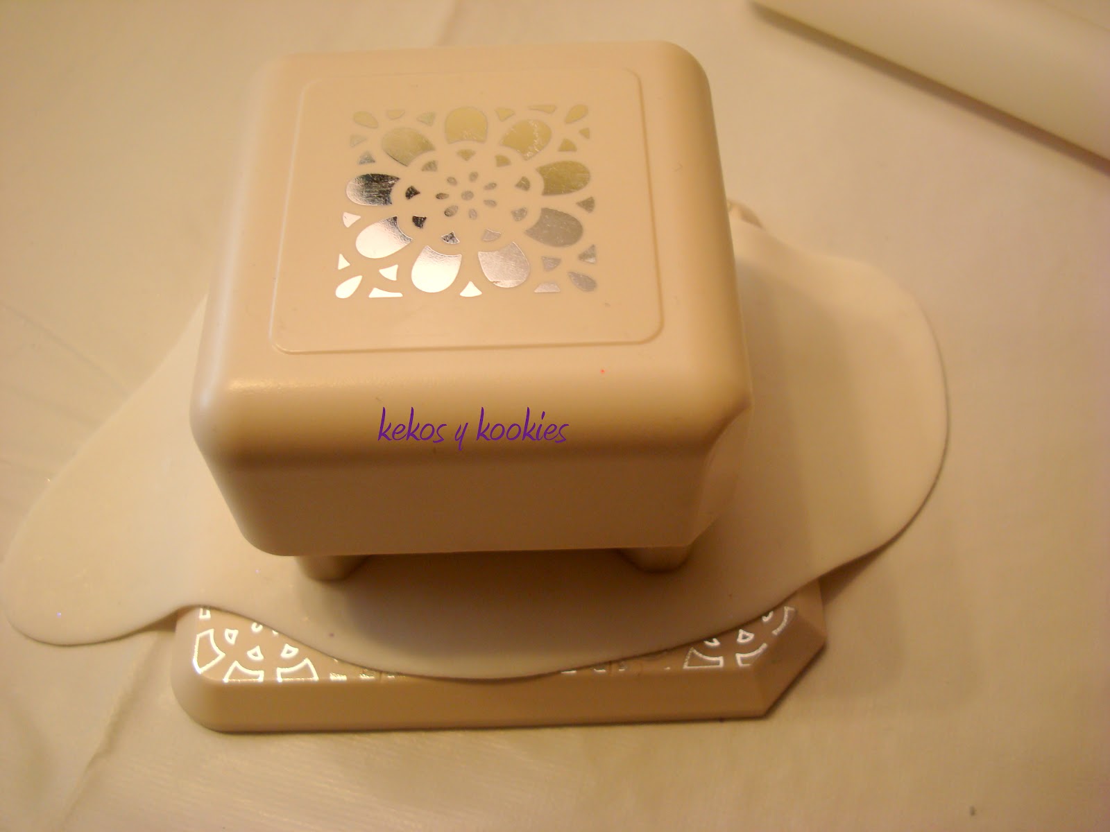 Hola de nuevo, nosotras perdidas por nuestro blog... pero es que no se puede todo en esta vida o si???.. A los que sois madres y además nos dedicamos a esto, creo que nos entenderán... no saben la cantidad de ideas y cosillas que pasan por nuestras mentes... pero el asunto es el "trasvase", hay que conseguir una fórmula que con solo pensar se hagan las cosas... uff seria genial... Bueno no les quitamos más tiempo, y ni seguimos soñando con fórmulas mágicas... lo que sí es mágico es poder al menos pensar y llevarlo al plano de lo dulce, del azúcar... eso nos fascina !!! Aquí les traemos otro pequeño mini tutorial... en este caso les damos una idea de cómo decorar galletas con fondant y troqueladoras. Que son las troqueladoras???? en nuestros países les llaman perforadoras y se usan para cortar papel y hacer decoraciones para scrapbooking!!! Hay de muchos tamaños, modelos y marcas. Ésta que usamos es de la marca Martha Stewart, pero hay unas de Artemio que vienen bien para este tipo de cortes. Aparte de la decoración de pasteles nos gusta mucho hacer scrapbooking, y aprovechamos el material (limpio y nuevo!!!) que teníamos para idear y crear una técnica diferente en una galleta, espero les guste!!! Lo único que necesitas es una troqueladora o perforadora (que solo vayan a usar para estos fines), fondant, rodillo,y obviamente las súper galleta del sabor que más te guste. Extender el fondant y presionar y cortar. Darle la forma de la galleta, pegarla. y listo!!!! Súper fácil!!! Más fácil y más mini este tutorial imposible... si seguimos así, el próximo será de dos palabras "hola y adiós " jejeje... intentaremos subir unas recetas de cupcakes que están de muerte lenta y un super bizcocho para tartas de fondat que nos sale genial y queremos compartir... En nuestra página de facebook, haremos un álbum de minis minis minis tutoriales por si estos son muy largos !!! Gracias y seguimos !!! Equipo de Canela en Casa