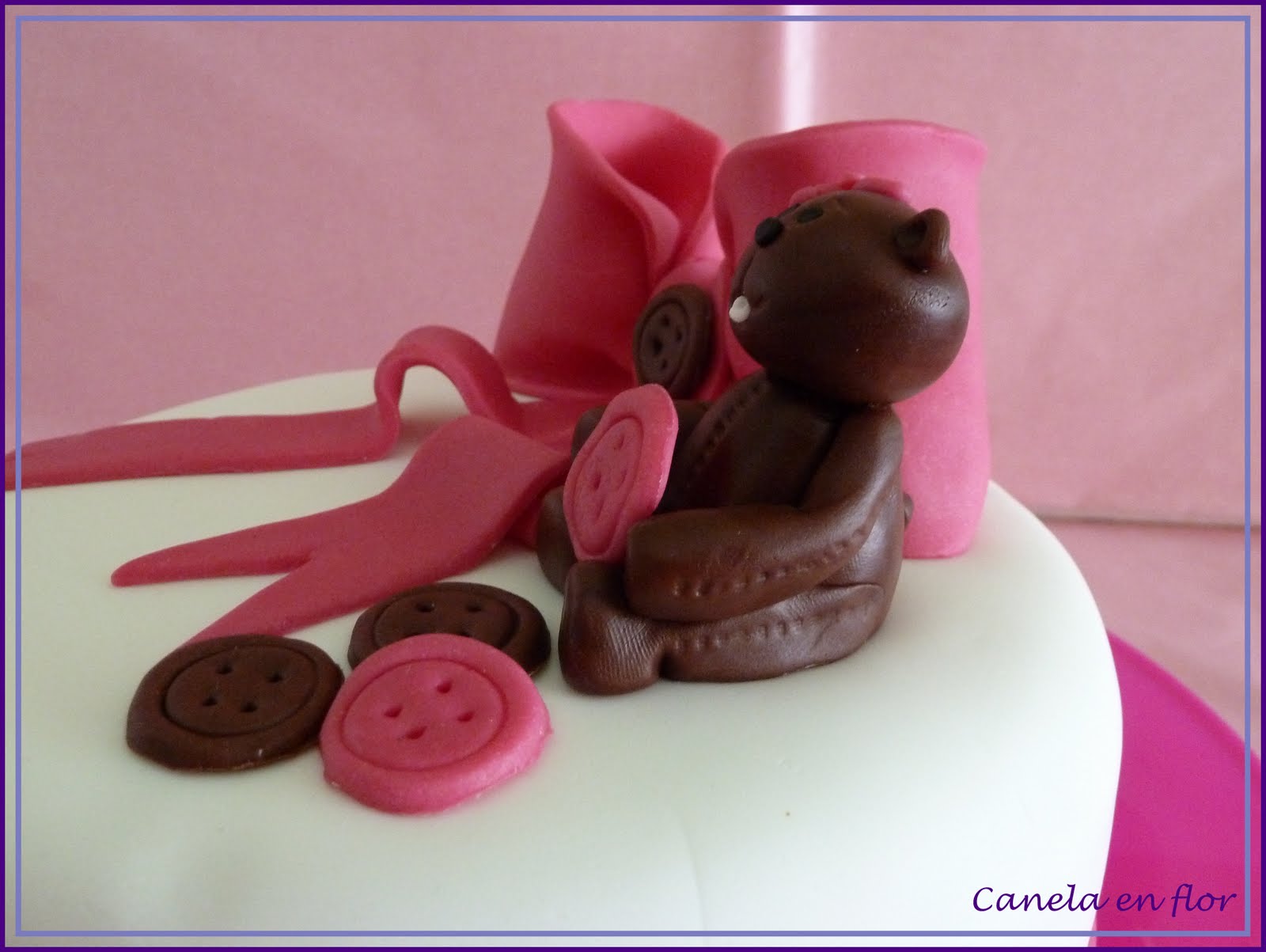 El sábado asistí a un curso de decoración de tartas en el obrador Hello Cakes. Estuve allí todo el día y la verdad que mereció la pena.El curso lo impartieron Vanesa y Alba con la colaboración de Eli, éramos ocho alumnas y aprendimos la elaboración de la tarta desde que se hace el bizcocho, hasta el modelaje de las figuras (lazo y oso).Hacía tiempo que tenía ganas de hacer una tarta decorada pero nunca me atreví a hacerla sola. Este curso me valió para aprender una base para hacer otras cositas. Quedé muy contenta con el resultado, se nota lo bien que nos enseñaron Vane y Alba. Muchas gracias por compartir con nosotras vuestros conocimientos, espero poder asistir a próximos cursos y poder seguir aprendiendo.Lo único de lo que no puedo hablar es del sabor, ya que no me atrevo a cortar un trocito, me da pena... pero ya os contaré. Aquí dejo unas fotos de mi tarta.