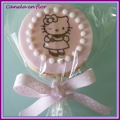 Roi cumplió 8 años, y su madre me pidió unas galletas para darle a sus compañeros de clase. Para las niñas la carita de Hello Kitty y para los niños una bota de fútbol que al final le añadí el balón para que quedase más completo.También hubo galleta para la profesora, una "piruleta-flor". Espero que os gustasen a todos y que Roi disfrutara de su día. Gracias!!!!