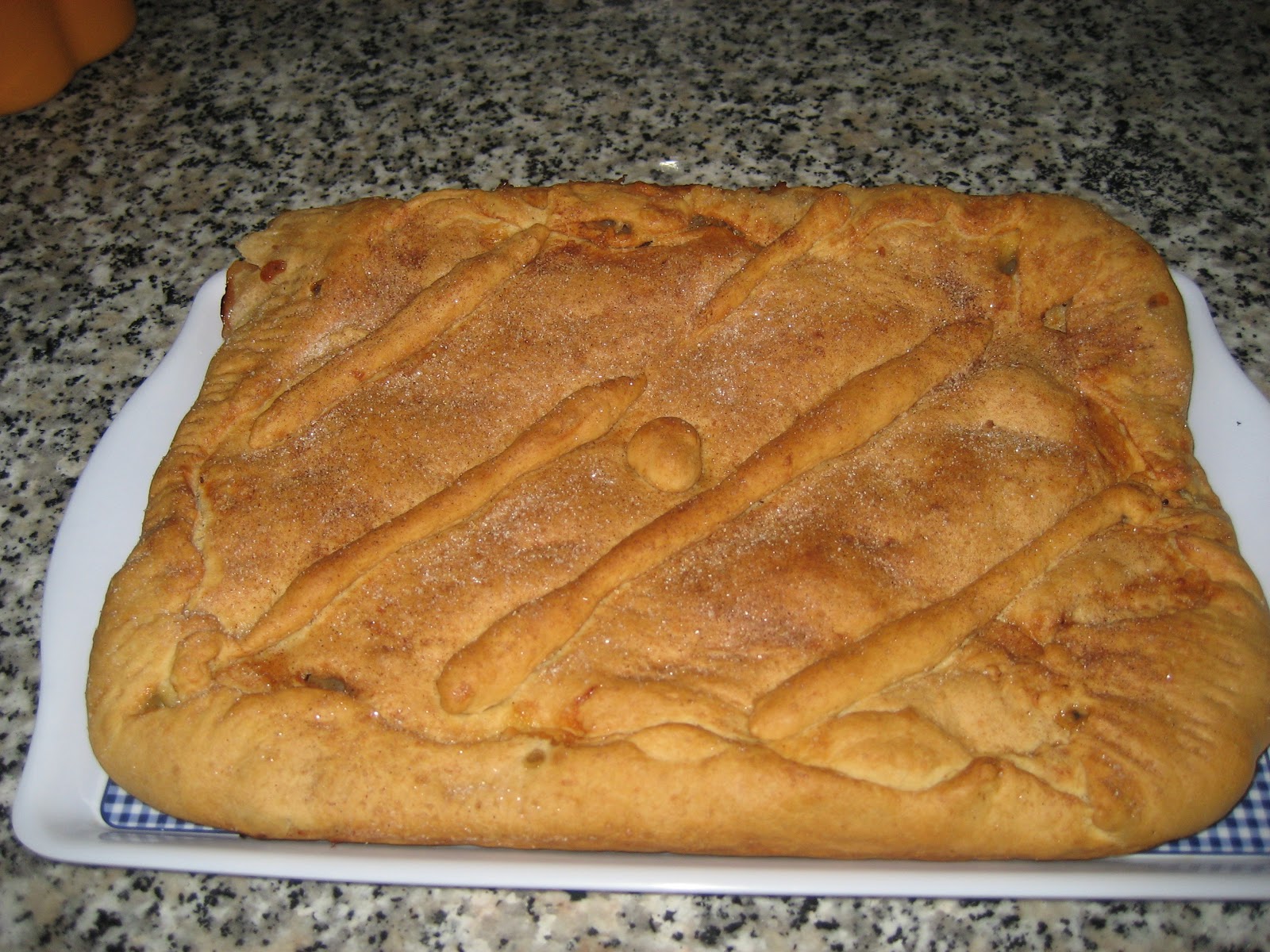 Ingredientes:Una taza de café, de vino blanco.Una taza de café, de aceite de girasol.Una taza de café, de leche.Una cucharadita de sal.Un sobre de levadura royal.Harina.4-5 Manzanas golden.Canela en polvo.Azúcar al gusto.Pizca de mantequilla.Elaboración:Lo primero que vamos hacer es el relleno. Pelamos las manzanas y las cortamos como para tortilla. En una sartén ponemos las manzanas con una pizca de canela, un trozo de mantequilla como unos 25 gr y las manzanas, las dejamos pochar hasta que se queden blanditas. Reservamos.Preparamos la masa: mezclamos los líquidos, salamos, añadimos la harina y la levadura. Amasamos hasta que nos quede una masa manejable.La dividimos en dos partes y formamos la empanada.Precalentamos el horno a 180º.Pintamos la empanada con el huevo y ponemos por encima azúcar y canela.La ponemos en el horno hasta que nos quede doradita.
