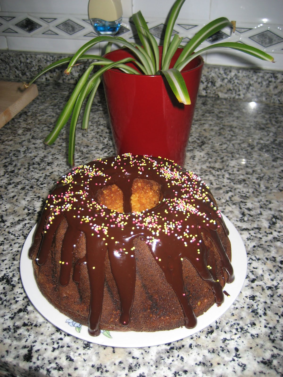 Ingredientes:250gr. Harina4 Huevos 1 Sobre de levadura.250 Azúcar.Pizca de sal.1 Naranja.1 yogur griego.Chocolate y nata para adornar.Virutas de colores.Elaboración:Precalentamos el horno a 180º.Lavamos bien la naranja y la trituramos con los huevos hasta que quede como una papilla, añadimos, el aceite, el azúcar, el yogur, el sal , la harina y la levadura tamizada.Untamos con aceite y harina un molde.Horno a 180º hasta que al pincharlo nos salga seco el palillo.Mientras enfría ,derretimos un poco de chocolate con nata líquida.Adornamos el bizcocho con el chocolate líquido. Podemos poner bolitas de colores.