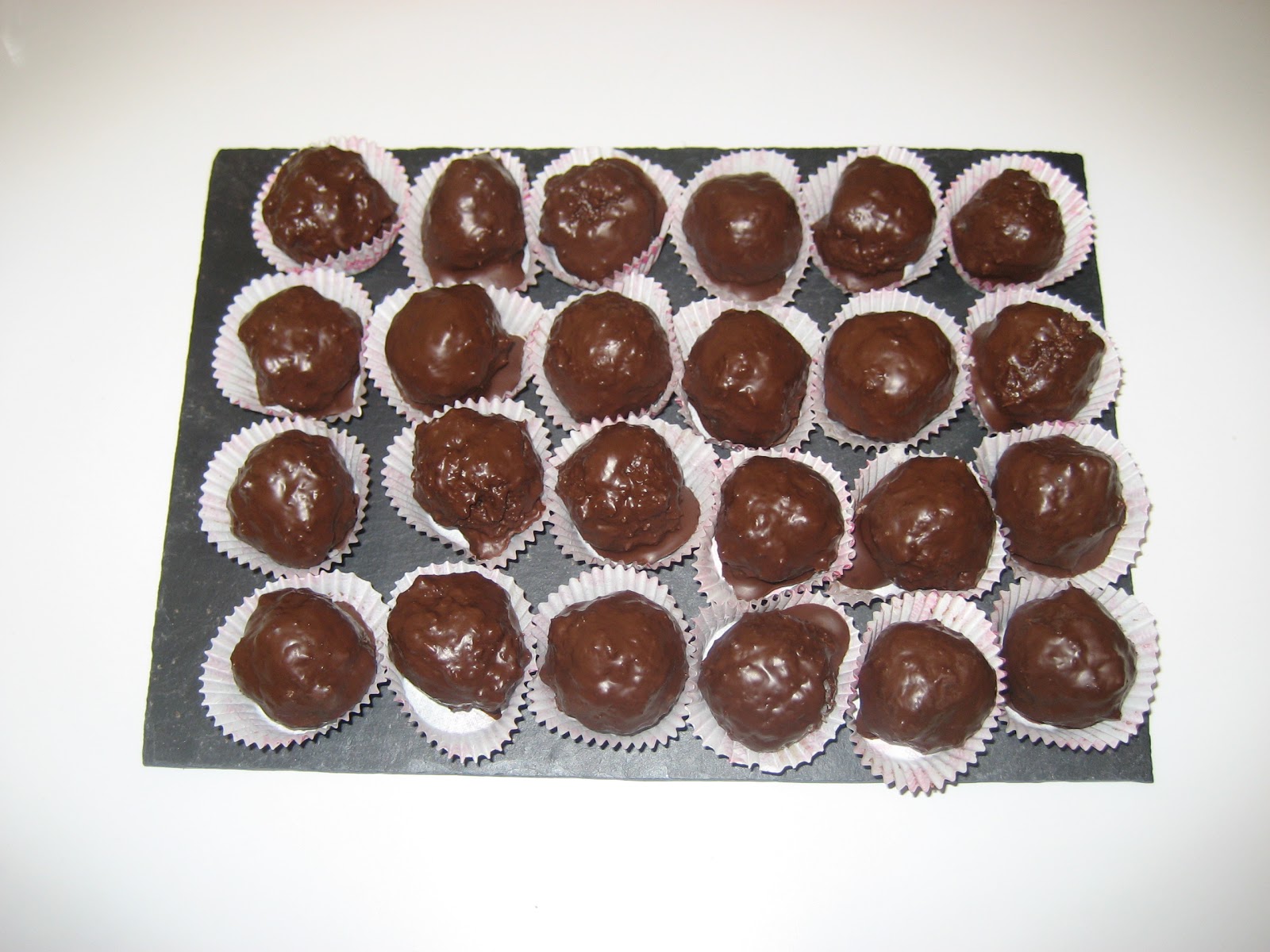 Ingredientes:250gr. Coco.250gr. Azúcar140gr. agua1 Cucharadita de azúcar vainillado.Aceite de girasol.200gr. Chocolate para postres.25gr. Aceite de girasol.Elaboración:Ponemos el agua con el azúcar normal y el vainillado al fuego, cuando empiece a hervir y el azúcar esté disuelto, apartamos de fuego y añadimos el coco, mezclamos y dejamos enfriar.Formamos las bolitas, nos podemos untar las manos con un poco de aceite para que nos resulte mas fácil.Derretimos el chocolate con el aceite y bañamos las bolitas, dejamos enfriar y servir.