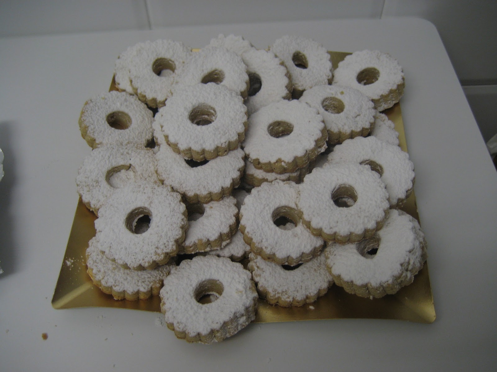 Ingredientes:220gr. Manteca de cerdo75gr. Vino moscatel.4gr. Semillas de anís.2gr. canela.1 Clavo de olor.50gr. Granillo de almendra.65gr. Harina de almendra.20gr. Caramelo líquido.3gr. Ajonjolí.425gr. Harina.75gr. Maicena.Azúcar glass para decorar.Elaboración:Primero vamos a tostar el granillo de almendra, yo lo hice en una sartén, luego lo trituramos un poco.Ahora tostamos el anís y lo molemos en un mortero. El clavo lo molemos también en el mortero.Mezclamos la manteca, la canela, el vino, el caramelo, el clavo, el ajonjolí, el anís, la harina de almendra y 2 cucharadas de azúcar glass, hasta que tengamos una crema.Ahora mezclamos el granillo de almendra, la harina, la maicena y se agrega a la crema.Yo hice la masa de noche y al día siguiente hice las rosquillas.Horno 190º hasta que estén dorados.Ponerles el azúcar glass.La receta es del blog Decoraciones de Mabel