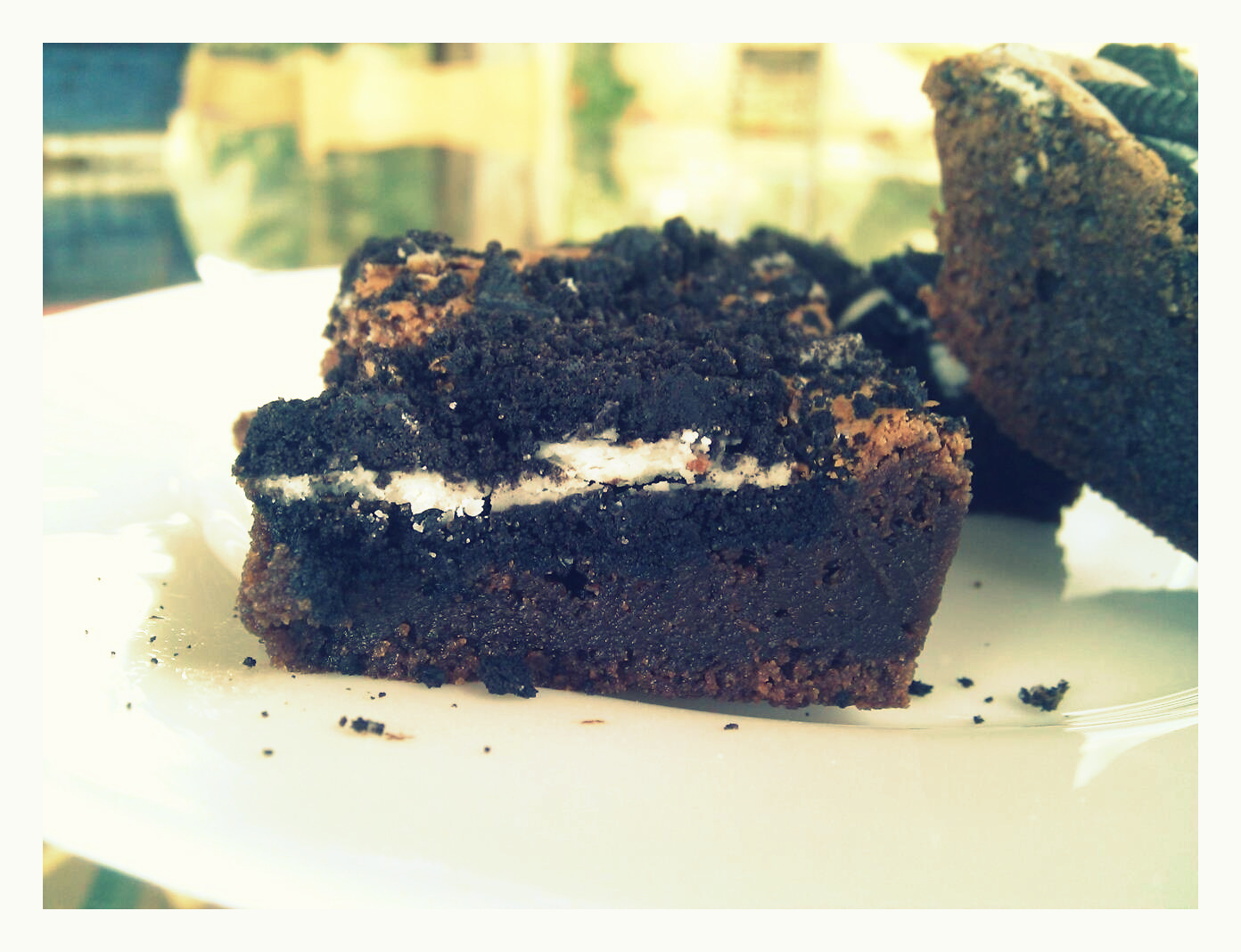 No sabía si hacer cupcakes o muffins y al final ¡acabé haciendo un brownie! No me decidía, me apetecía hacer unos cupcakes de megachocolate, con chocolate y más chocolate por encima, pero a la vez me apetecía algo más fresco y menos empalagoso, ya que las cenas que organiza Tamy todos los veranos son míticas porque acabas lleno de comidaaaa, jijijijiji,. Y se me encendió la bombilla de las ideas (que no se suele encender muy a menudo) y me acordé que tenía una receta guardada por algún rincón del ordenador esperando una ocasión especial. Y dicho y hecho, compré todos los ingredientes y 45 minutos antes de la hora prevista para la cena me puse corriendo a cocinar. Y conforme saqué el brownie del horno, lo puse encima de una bandeja, cogí un trapo para no quemarme y salimos corriendo a casa de mi hermano para cenar. Después de una cena deliciosa que nos preparó Tamy con cosas típicas de Sevilla, sacamos los postres. Y no recuerdo muy bien quien lo compró, pero a Manel también se le encendió la bombilla y dijo: le ponemos mantecado por encima!! (para quien no lo conozca, el mantecado es muy parecido al helado de vainilla, pero más suave, y se usa mucho por esta zona para mezclarlo con el café granizado) y entonces empezó el fenómeno que he bautizado como "magia borras": ¡ahora lo ves, ahora no lo ves! El brownie voló rápidamente de los platos (y eso que yo no le tenía mucha fe, pensaba que no se había hecho bien) y nos quedamos felices y contentos de habernos juntado a cenar (y llenos de comidaaaaa!!!! aaaaaggg!!)La receta la saqué de mi querida página de Directo al paladar y tienen razón, el brownie se queda como si fuera masa cruda, aunque no es masa cruda, tenéis que probarlo para saber a lo que me refiero.En fin, si juntas dos de las cosas más ricas que existen en el mundo, el resultado será algo delicioso, como este brownie de galletas oreo :) Brownie de galletas oreo Ingredientes: 165g. de mantequilla 200g. de chocolate negro troceado (yo usé el chocolate negro de Nestle) 3 huevos grandes 2 yemas 1 C de extracto de vainilla 90g. de azúcar blanco 75g. de azúcar morenos 30g. de harina 1pizca de sal 170g. de galletas oreo (son unas 16 galletas grandes) Preparación: Precalentamos el horno a 180ºC arriba y abajo. Derretirmos el chocolate junto con la mantequilla teniendo cuidado de que no se queme. Reservamos. En otro cuenco ponemos los huevos, las yemas, el azúcar blanco y el moreno, y batimos con la batidora de mano hasta que se monten los huevos y aumente el tamaño de la mezcla. Para montar los huevos es mejor que estén a temperatura ambiente, si están frios no subiran. Añadimos poco a poco el chocolate a la mezcla anterior, y mezclamos despacio para no perder el volumen. Tamizamos la harina y la añadimos junto con la sal. Añadimos el extracto de vainilla y reservamos. Engrasamos el molde con mantequilla y añadimos la masa del brownie. Después ponemos las galletas troceadas por encima y metemos al horno durante 30min. o hasta que el palillo salga limpio. Debéis tener en cuenta el tamaño del molde, cuanto más grande sea menos será el tiempo que necesite dentro del horno, y viceversa. Dejamos enfriar antes de comer. Podéis acompañarlo de helado (ahora venden helado de oreos también) o comerlo sólo. ¡¡No os va a defraudar!! Yo he hecho dos en 3 días, jajajajjaja, y no ha quedado ¡nada de nada! ¡Un besote a tod@s!