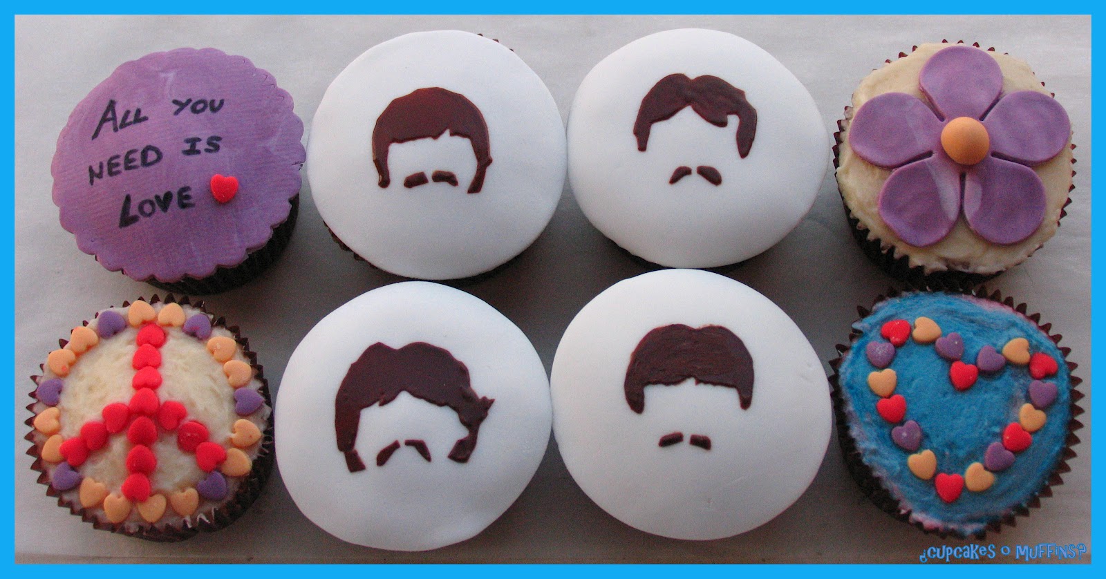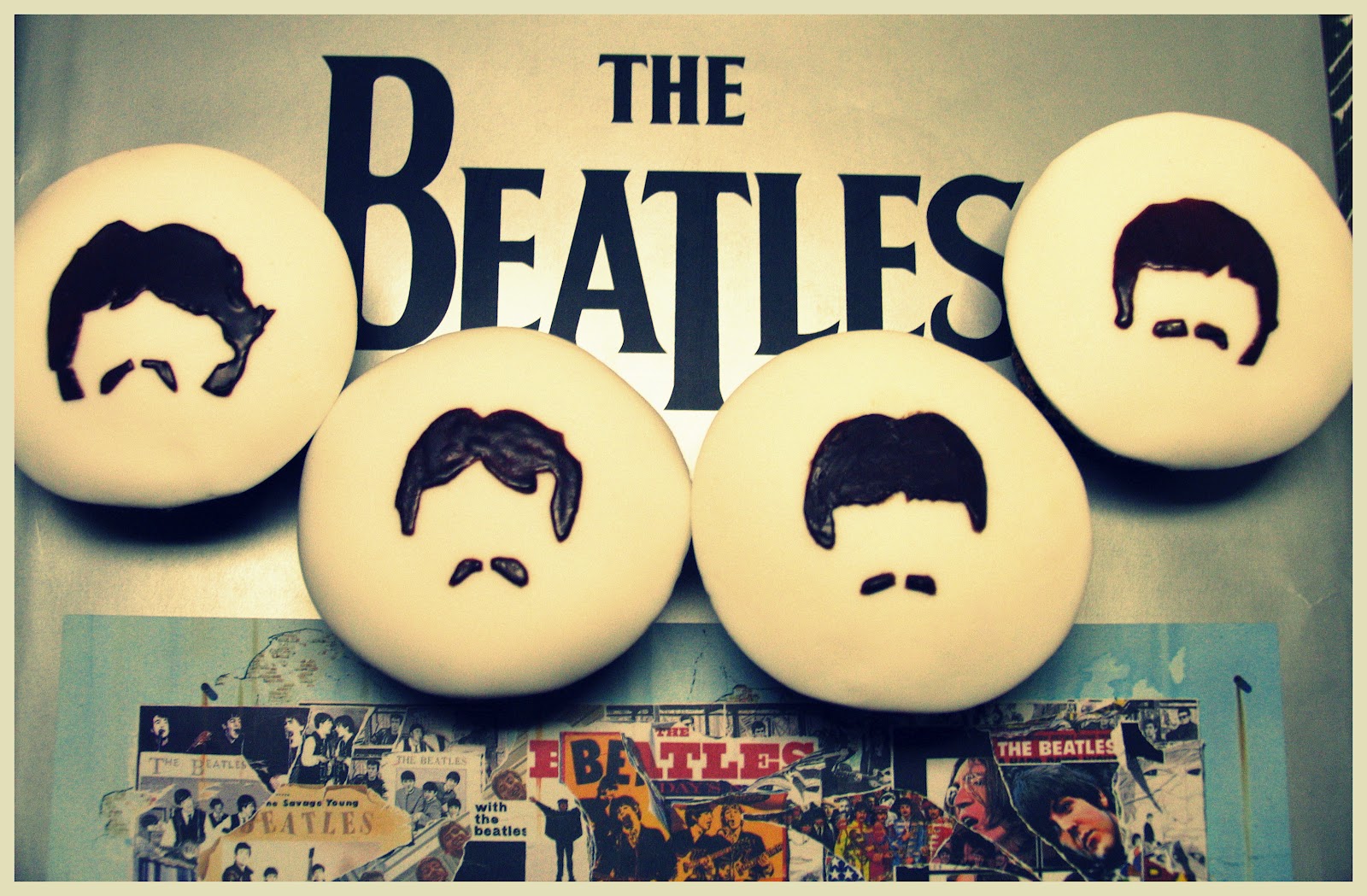 Los Beatles han estado en mi vida desde que tengo conocimiento, no de una manera obsesiva (jajajaja) pero si que era muy habitual oírlos por mi casa. Te haces un poco más mayor y te haces un poco más friki al respecto (en mi casa somos muuuy frikis en temas musicales, lo reconozco), y entonces te encuentras con que tu tio es el hombre más sabio que has conocido jamás en temas de música (por no decir que es un megafriki vamos, jajajajaja) y te dice una frase que no se si a alguien le sonará: "o eres de los Rolling o eres de los Beatles" (el, por supuesto, es de los Beatles). Y desde entonces hasta ahora he sido fan (megafan) de los Beatles. La idea la hemos ido madurando durante un tiempo. Quería hacer algo de los Beatles pero no sabía muy bien que hacer. He visto tartas fondant de los Beatles por internet preciosas, enormes!! He visto cupcakes monisimos también, pero con mucho trabajo de fondant, y yo no soy muy pro-fondant, lo uso en ocasiones especiales, ¡y esta era una ocasión especial! Hicimos unos cupcakes sencillos de chocolate con BC de crema de orujo (¡clásico de casa! jajajajaja).Y teñimos de colores parte de la BC para hacerlos más de los 60 :) ¡Y por fin pude estrenar mi rotulador dulce! Poniendo una frase preciosa: ¡¡ALL YOU NEED IS LOVE!!He hecho un tutorial con el paso a paso de como hacer tus propias plantillas beatleleras, lo encontrareis en este enlace.¡¡Un truco que tengo que contaros!!Para hacer la forma en el fondant usamos chocolante caliente fundido y atemperado. Ponemos la plantilla en el fondant y la apretamos ligeramente para que el chocolate no se filtre por debajo de la plantilla. A continuación ponemos con una cucharita un poco de chocolate por encima y con una espátula retiramos suavemente el sobrante de chocolate. Después, con una paciencia infinita y un pulso firme, retiramos con cuidado la plantilla y ¡¡voilà!!Tengo que confesar que yo repetí el primero que hice unas tres veces: el problema es que si el chocolate está muy frió se hacen unos hilitos (¡¡malditos hilitos!!) que se rompen y caen en tu precioso fondant blanco blanquísimo . . . asi que el chocolate debe estar atemperado y ponerlo en su justa medida para que no nos sobre mucho al retirar la plantilla, de esta manera se queda finito y se seca fácilmente el chocolate. ¡¡Un besote enorme a tod@s!!¡¡Y feliz cumpleaños y santo Miguel!!