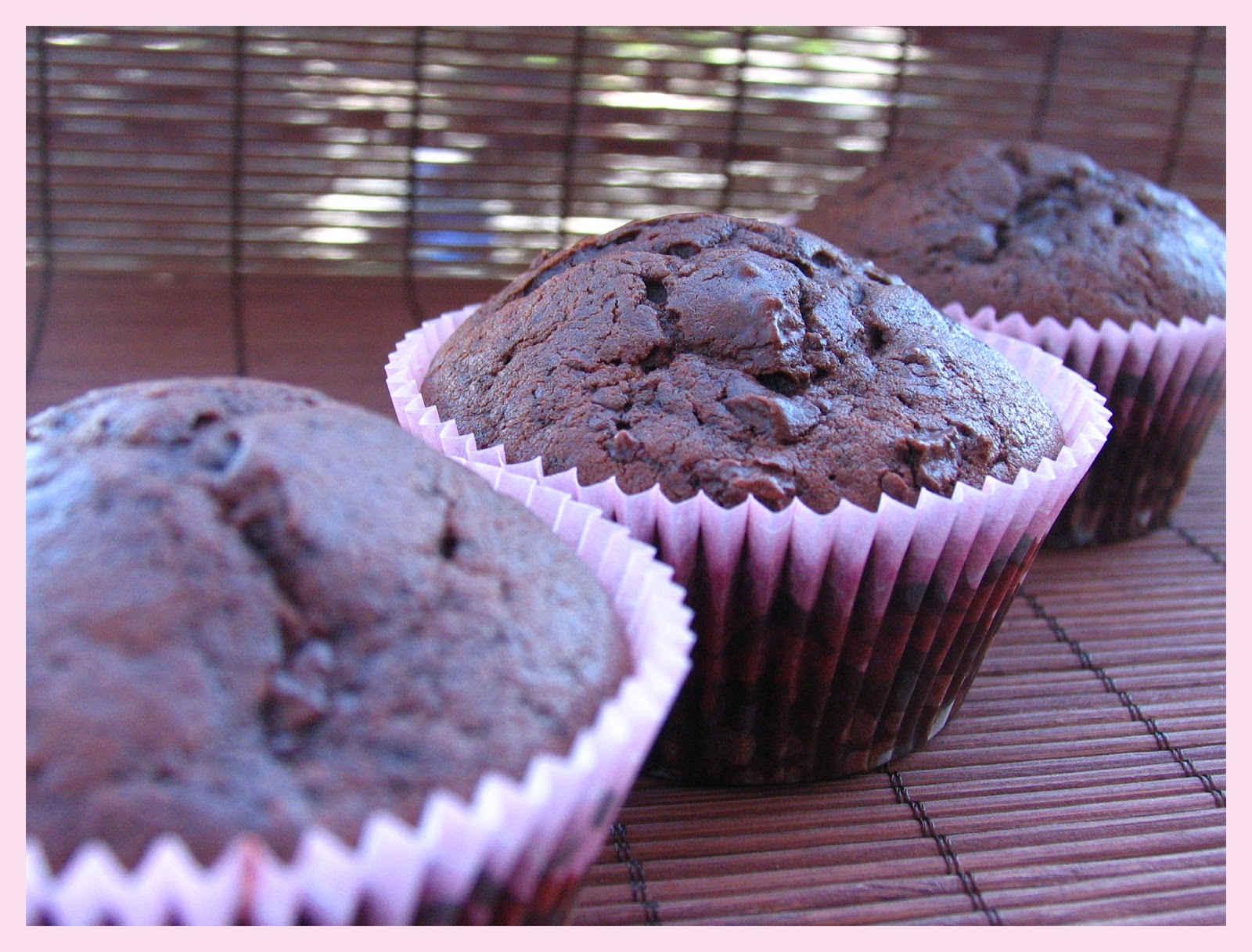 Y no lo digo yo, lo dice todo el mundo: ¡están impresionantes! La primera tanda que hice no duró mucho, ¡no pude hacerles ni una fotito para el blog! Así que me puse manos a la obra y repetí los muffins (con el chocolate Hershey por supuesto!! jajajajaa) Y ya que estaba hice un pequeña variación a la receta, y a la mitad de la masa le añadí un plátano machacado y . . . ¡que puedo decir! Me encanta el contraste de ambos sabores. Esta semana pasada estuve bastante liada, con la preparación del curso de cupcakes: el viernes tooooda la tarde con el horno encendido y las manos en la masa preparando los cucpakes. Mucho nervio, ¡¡no podía dormir!! Me desperté el sábado pronto y ya lo tenía todo listo, la noche anterior lo había dejado todo arreglado para que no me pillara el carro. ¡Me fui sin comer al curso del nervio que tenía! Menos mal que luego me fui tranquilizando y el curso fue genial: ¡¡ellas fueron encantadoras, simpáticas y maravillosas!! y ¡mi ayudante el mejor del mundo! :)Y cuando terminó el curso y me senté en el coche me relajé y se me pasaron todas las preocupaciones que tenía. ¡¡Dormí del tirón!! Y el domingo por la mañana cuando me levanté, como no había tenido suficiente tanda de horno, lo volví a encender y me puse con estos muffins, jijijijiTriple chocolate muffins (receta de browneyedbaker)Ingredientes:95g. de mantequilla150g. de azúcar100g. de chocolate troceado250g. de harina50g. de cacao en polvo sin azúcar300ml de buttermilk1c de esencia de vainilla1C de levadura1/2C de bicarbonato sódico1/2C sal1 huevo LPreparación:Precalentamos el horno a 180ºC. Derretimos la mantequilla y la mitad del chocolate troceado al baño maría y lo dejamos enfriar. Mientras, ponemos el azúcar, la harina, el cacao, la levadura y el bicarbonato en un cuenco y mezclamos bien. En otro cuenco ponemos la buttermilk, los huevos y la vainilla y lo batimos todo. Después mezclamos los ingredientes secos con los húmedos, y añadimos el chocolate fundido removiendo lentamente. A continuación metemos los trozos de chocolate y removemos con suavidad.Rellenamos las cápsulas 2/3 de su capacidad y horneamos durante 20min., después los sacamos y los pasamos a la rejilla de enfriar.NOTA: Recordar que C mayuscula es cucharada sopera, y c minúscula es cucharita de café :)A los amantes de los muffins: no os podéis perder esta recetaPara los que no sois amantes de los muffins: no os podéis perder esta receta tampoco, jajajajajaEspero que os guste, ¡¡un besote a tod@s!!PD: ¡¡hemos superado las 10.000 visitas en el blog!! No me lo puedo creer : ¡¡mil gracias a tod@s!! Sin vosotr@s esto no sería posible, ¡¡¡muackassssss!!!¡¡¡¡¡GRACIASSSSSS!!!!!