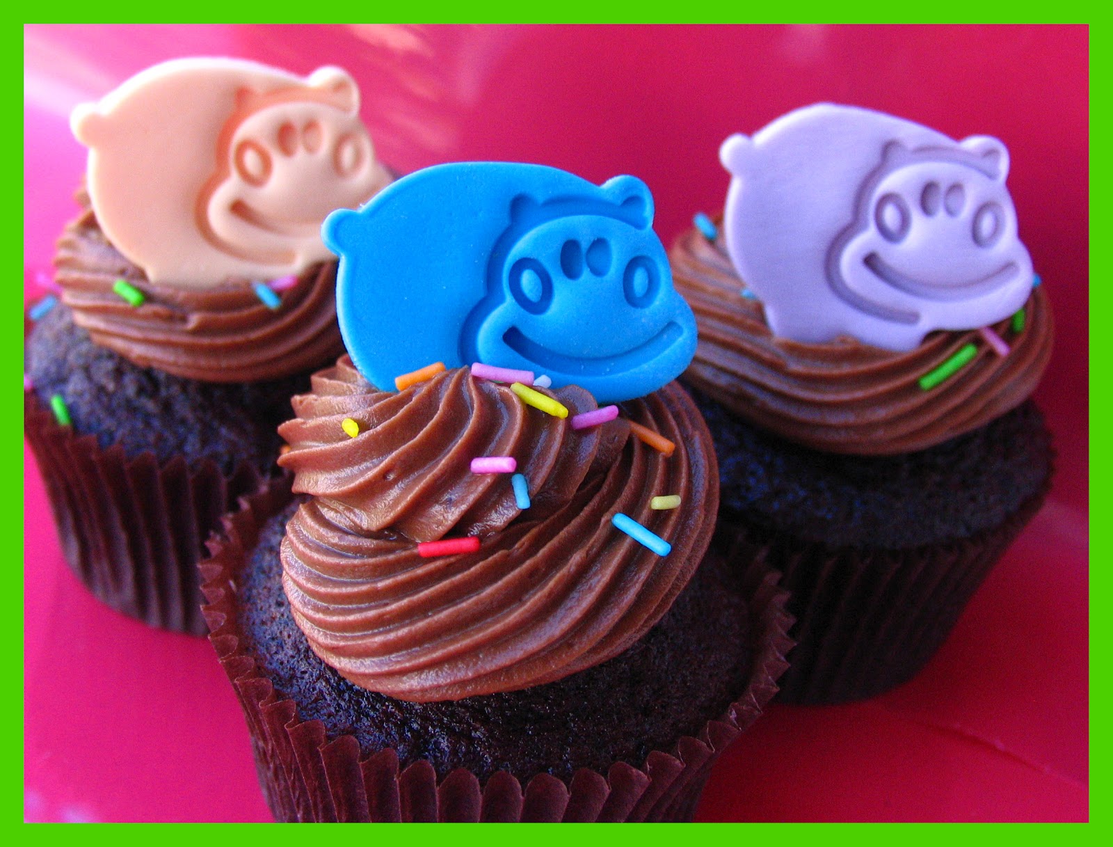 A principio de Agosto decidimos ir a Murcia de tapeo, ya que nos habían comentado que hay una zona llena de barecitos geniales para tapear. Y allá vamos nosotros, con casi 40ºC a la sombra y un aire caliente que te tiraba de espaldas, a buscar la Plaza de las Flores. Encontramos un parking y nos lanzamos como locos a aparcar (el trafico en Murcia es horrible!! Muchos coches, y yo soy muy mala al volante!! jajajaja, lo digo con cariño eh? que no se ofenda nadie!! que adoro Murcia!!) Y la gran sorpresa la tuve cuando salimos del parking, andamos unas calles y nos encontramos con una tienda: American sweet. Miré a mi novio, miré a mi hermano, puse cara de niña angelical y me dijeron : veeeeeenga, ¡vamos a entrar! Y aquello era un paraíso para cualquier dulcemaníaca como yo: cereales, barritas de chocolate, preparados para tortitas, para cupcakes, y entonces lo ví: ¡¡Hershey´s cocoa!! Había oído hablar de el, lo había visto en el Corte Inglés a un precio bastante elevado. Lo cogí : ¡mio!¡me lo llevo! No puedo describir el olor que tiene. . . es intenso, un poco amargo, ¡es genial! Me he enamorado de el, jajajajaja, no tiene nada que ver con el chocolate nuestro (yo uso normalmente el de Valor o el de El Clavileño, pero son más suaves) y bueno, es algo más caro, pero merece la pena totalmente. Me puse a buscar una receta para hacer unos cupcakes deliciosos, y recordé que nunca había hecho una receta de Sweetapolita, así que me pasé por su página, y me puse a buscar una receta que encajara con el chocolate Hershey. ¡Y la encontré! Este es el enlace de la receta, hice alguna variación en los chocolates sobretodo, tanto en la buttercream como en el cupcake. La receta es deliciosa, me encantó, un cupcake muy esponjoso y muy dulce, genial.Lo bueno que tiene Sweetapolita es que tienes las medidas en cups y en gramos, ¡una maravilla! Te facilita muchisimo la fanea.Classic One Bowl Chocolate Cupcakes de Sweetapolita (con alguna variación)Ingredientes:90g. de harina150g. de azúcar30g. de Chocolate Hershey (o cualquier chocolate en polvo sin azúcar, si es negro mejor)3g. de bicarbonato3g. de levadura3g. de maizenauna pizca de sal70ml. de buttermilk60ml café caliente45ml aceite vegetal1 huevo1 y 1/2 c de extracto de vainillaPreparación:Precalentamos el horno a 180ºC y preparamos nuestras cápsulas de papel. Añadimos los ingredientes secos en un bol y los mezclamos (harina, azúcar, bicarbonato, levadura, maizena, sal y el chocolate, en la receta no lo ponía, pero yo lo tamicé todo). Después añadimos los ingredientes humedos y batimos unos 2min. hasta que esté todo bien integrado. La mezcla es muy liquida, no os preocupeis.Llenamos las cápsulas menos de 2/3 de su capacidad, porque suben muuuuucho, y salen un poco volcanes, jajajaja.En 15min estarán listos, los sacamos y ponemos en una rejilla para enfriar.Buttercream:La buttercream que hace ella es una mezcla de nutella y chocolate, que me llamó mucho la atención. Está riquísima, ¡para comértela a cucharadas hasta no poder más! Jajajajaja. ¡Recomendable 100%!Ingredientes: 227g. de mantequilla sin sal, 190g. de azúcar glas, 10ml. de extracto de vainilla, 100g. de Nutella, 125g. de chocolate negro derretido, una pizca de sal (ponía 15ml de leche, pero a mi la consistencia que tenía me gustó y no se la puse)Preparación: batimos la mantequilla con el azúcar hasta conseguir una mezcla blanca y brillante (la mantequilla sacarla de la nevera 5-10min. antes de usarla, que este un poco blanda pero fría). Añadimos la vainilla, y batimos un poco más. El chocolate negro tiene que estar derretido y enfriado. Lo añadimos a la mezcla anterior y batimos unos minutos. A continuación añadimos la Nutella (al gusto, yo puse dos cucharadas soperas enooooormes, jijijiji), la sal y batimos un poquitín más.Y listo, ya podemos decorar al gusto. Yo usé los cortadores que me he comprado para hacer unas figuritas de fondant, el hipo me encanta, ¡¡es taaaan mono!! jijijijiiUna receta deliciosa, fue ponerlos en la mesa y, ¡vistos y no vistos!Os va a encantar, ¡lo prometo!¡Un besote a tod@s!PD: encontramos la Plaza de las Flores, ¡y comimos de muerte! Entramos en 3 sitios diferentes y nos encantaron los 3, que comida tan rica, ¡riquísima! La mejor gamba con gabardina que me he comido jamás con diferencia, una croqueta de morcilla de arroz y champiñones.... ¡¡ñaaaam!! Una tabla de embutido... ¡¡¡uufff!!! No quiero daros envidia, tenéis que ir a Murcia y buscar la Plaza de las Flores, ¡sino la encontráis decírmelo que yo os digo donde está!:)