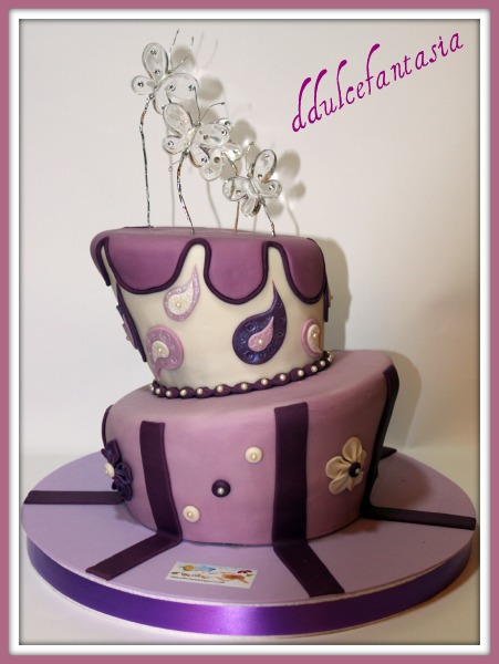 Os presento a mi mami, aunque os parezca mentira es la primera tarta que le hacemos ,pero todo tiene su explicación , ella es diabetica y todo lo que es azúcar no lo debe ni de probar.Pero resulta que en los demás cumpleaños ella termina probando un trocito,la pobre mía no se puede resistir,asi que Jesús y yo decidimos que este año tendría la suya y le dimos la sorpresa el día de su cumpleaños.Desde aquí Mama decirte que te quiero con toda mi alma, desde que estoy en este mundo de las tartas nos vemos mucho menos,es mucho el tiempo que le he dedicado a practicar y aprender cositas de este mundo que me apasiona,y espero que me perdones.Mi madre tiene mucho valor y merito,se quedo viuda con 50 años y con ochos hijos para sacar adelante,ya que yo ya estaba casada.No se lo pensó dos veces, se puso a trabajar,para sacar a mis hermanos adelante y valla si lo consiguió,aun hoy no para,en su casa viven dos de mis hermanos,cuida a una sobrina y nos echa cables a todos cada vez que lo necesitamos.Es una mujer fuerte,se merece lo mejor del mundo,gracias mama por luchar por todos nosotros.Como le veis en su carita, le encanto. Queríamos hacer algo distinto y nos decidimos hacer una topsy turvy nos encantan este tipo de tartas. Lo mas difícil de ellas es forrarlas,cuesta vamos que me hizo sudar un poco.El problema es la diferencia de ancho de la parte de arriba a la de abajo,se te queda muy despegada del bizcocho y te salen pliegues por todos los lados,que con mucha paciencia pude controlar,aun así espero cogerle el truquito y que me vallan saliendo mejor.Os gusta las mariposas, las compre en squires kitchen y que mejor oportunidad que esta para estrenarlas verdad.El bizcocho de abajo un red velvet bunt cake relleno de smb de chocolate y almibar de chocolate y el de arriba bizcocho de nata relleno de ganache de fresa y almibar de fresas.La masa sodider es buenísima os la recomiendo 100%, es muy elástica y tiene un sabor a cítricos muy bueno.