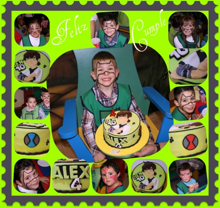Terminaron las fiestas y me da un poco de pena,hemos tenido unos días muy agradables,si ya se que me diréis que mucho jaleo también,no puedo decir que no,he cocinado muchísimo,pero la cocina me encanta y este año Jesús ha estado a mi lado para ayudarme y lo he notado mucho.Hemos ido en las fiestas a casa de mis hermanas,sus casas son mas grandes y somos muchos.Pero como de costumbre me dejan escoger el menú y que queréis que os diga, podía haberme ahorrado trabajo comprando cosas hechas pero, sabéis como yo, que como lo casero nada verdad.Ademas lo hago muy a gusto,para quien mejor que para ellos,no sabéis como valoro las cosas,que mas podía pedir ,mi familia reunida,algunos de mis hermanos , mi madre y mis cuñaitos,para mi es lo mas.Me he acostumbrado a ver a mi hijo el mayor todos los días por casa,ya hoy se marcha para Sevilla a seguir estudiando y lo voy a echar de menos,pero ahí que seguir ,las vacaciones no van a durar siempre.Este año espero que sea un año lleno de cosas nuevas,proyectos con muchas ilusiones.El primer cambio lo veréis muy prontito y lo estamos haciendo con muchas ganas e ilusión,ya os avisare.Y ahora pasamos a la tarta,es la primera en 2d sacada de un modelo y quiero decir que tiene su técnica y no es tan fácil,esperamos mejorar y practicar mucho.Era para Alejandro,nuestro fan numero 1 , así es como lo llamamos,esta es ya su 3 tarta y lo tenia muy claro, debía de ser de Ben 10.Ya le veis la carita, disfruto como un campeón y todos sus amiguitos que iban detrás de la tarta para que no se perdiese jajaja.Como no la pudimos cortar en el parque infantil,porque como ya os he dicho otros años, allí le ponen una,pero mi sobrino no la quiere, así que se la llevamos al menos para que se pudiera hacer las fotos y luego comérsela en casa. Merece la pena el trabajo,por solo verle esa carita tan guapa que tiene y no es pasión de tía verdad. Aquí los detallitos de cerca.El bizcocho hice un devil!s food cakes,me encanta este bizcocho es tan jugosito y con un sabor a chocolate buenísimo,ademas tenía la curiosidad si podía utilizarlo para estas tartas y desde luego aguanto perfectamente.No se si aguantaría otro piso encima,pero tengo que probarlo ya os contare,lo rellene con smb de chocolate y almíbar de sirope de chocolate,como veis en mi familia somos muy chocolateros.Mi hermana al día siguiente repartió trocitos de la tarta,sobre todo porque los compañeros del cole de Alex tenían muchas ganas de probarlo,a mi me trajo un trozo y no llegue a probarlo.Se lo di a mi hijo el mayor por la noche para que cogiera un trozo y se lo comió entero y el no es muy goloso,pero me dijo que le encanto y se noto, valla que si se noto,porque a los demás no nos dejo nada. Alex y sus amiguitos,te quiero chiqui.