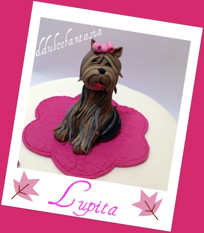 No se si os pasa a vosotras,pero muchas veces me digo,pero quien me mandara a mi a meterme en esto,además es que no se decir que no.Y eso aveces me ha dado muchos quebraderos de cabeza,no os pasa?Ahora estoy contenta,cuando la miro es que no me creo que la haya hecho yo,cuando la estaba modelando le decía a Jesús que no la veía y el me insistía en que siguiera que tenia buena pinta,no estaba segura del resultado,hay días que te cogen que no ves mas allá de tus narices como se suele decir,te entra la inseguridad y crees que no eres capaz de hacer nada.Si, lo confieso aveces soy muy insegura y la mayoría de las veces no me valoro como debiera,Jesús es el que me regala un poco los oídos y me sienta de maravilla y vuelvo a confiar en mi.Ademas hoy quiero deciros que estoy muy contenta despues de pasar unos dias malillos,por el despido de Jesus ,hoy por fin se cierra una pagina de nuestras vidas,la empresa no quería valorar los 26 años de trabajo ,es un poco largo de explicar y no merece la pena entrar en detalles.Para resumiros un poco,la indennisacion que le daban no hemos estado de acuerdo con ella,asi que consultamos con un abogado y hemos luchado hasta el final y si lo hemos ganado,la empresa ni siquiera ha querido ir a juicio y nos ha dado lo que le pertenecía,ademas el despido ha sido declarado improcedente.Nos jugábamos mucho,pero los dos estábamos decididos a luchar,por lo que han sido unos días como os podéis imaginar difíciles y digo los dos porque nadie apostaba a que el caso lo ganara y cuando digo nadie es porque nos hemos visto solos a la hora de la verdad.Aun después de ganar,te queda el mal sabor de boca,porque el engaño y la indignación no tiene precio y sobre todo la dedicación que se le ha dado a la empresa no te la valoran para nada.Jesús es un gran profesional,que amaba y ama a su profesión y eso ya parece ser que no importaba,al final eres un numero mas,pero el se va con la cabeza muy alta porque ha luchado hasta el final. Bueno volvamos a la tartita,nos la pidió Anabel,era para su cumpleaños y el de su perrita a la que le tiene mucho cariño.Ella tenia muy claro lo que quería,si claro su perrita Lupita , quedo encantada, así que una vez mas misión cumplida.Estamos preparando un curso de tartas,si algun@s estáis interesados os ponéis en contacto con nosotros en el 687596235 o nos mandáis un Email a ddulcefantasia@hotmail.es la fecha dependerá de la demanda y que os venga bien,ahora esta el puente y las fiestas así que quedara poco días libres.