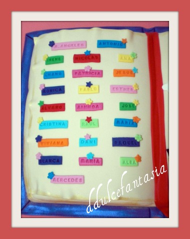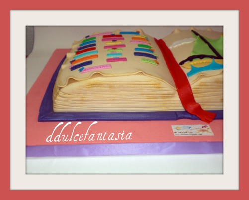 Que alegría de puente,sobre todo porque Jesús lo enlaza con la segunda parte de sus vacaciones y hemos pasado un fin de semana estupendo , por si fuera fuera poco,hoy es mi cumple,si un añito mas,pero no pongo cuantos,que ya son muchos jejeje.Pero eso si ,la alegría de haberlos cumplido y poder haber hecho tantas cosas,unas mal ,algunas regular y otras mucho mejor.Porque desde hace ya unos pocos de años comprendo la frase de (ya quisiera yo tener tu años ,pero con mi experiencia) pues si,los años te da,haber pasado mas cosas y de ella haber aprendido.Aunque aveces,lo aprendido se nos olvide y volvamos a caer en el mismo error,pero yo no voy hablaros de cosas negativas hoy,si no voy a contaros la historia de esta tarta.Un libro es otra de las tartas que teníamos muchas ganas de hacer se nos presento la oportunidad,Mercedes y sus compañeros de clase, quería sorprender a su profesora,en la fiestecita de fin de curso,que bonito verdad,que los alumnos regalen un detalle a su profesora,eso dice mucho de ella. Querían un libro y que en sus paginas,estuvieran puesto todos sus nombres,como no me dijeron nada masme parecía un poco soso, así que le pregunte,por aficiones de la profesora y la adivináis verdad,la vela.Se nos ocurrió hacerle un barquito y darle mas color a a tarta. No es tan difícil,la hemos hecho con un molde que compramos,luego de forrarla,le hicimos las dos hojas independientes y afinamos los bordes, dándole mas realidad.Luego rallamos los bordes de la tarta,para que parecieran las paginas y pintamos con polvos de color oro.La tapa del libro también hecha a parte y luego adaptada ,le dimos la forma,mas parecida.Para darle un color bonito después de teñirla de color lila,le dimos con moon beams saphire de squires kitchen,me gusta muchísimo le da un toque de brillo y tornasol,es ideal.La experiencia ha sido buena y esperamos poder mejorarla,pero quedo muy atractiva,unas de las cosas mas entretenidas,los nombres,uno a uno y tan pequeños para que pudieran entrar los 25.El bizcocho un msc de vainilla,,relleno de ganache de chocolate blanco y smb de nuttela,bañados con almíbar de chocolate.Espero que hayáis tenido un buen fin de semana,yo espero disfrutar hoy de mi cumpleaños, así que me voy a un spa a relajarme,que hay que cuidarse.