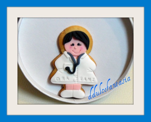 Que tal estáis pasando el veranito,da gusto estar en la calle,la playita o la piscina,el verano es para disfrutarlo verdad,estar en reuniones con los amigos y relajarnos,que también nos hace falta,no creéis.Aquí os traigo unas galletas,como veis es para una doctora, recién licenciada,Loles me llamo, quería sorprender a su hija,que alegría verdad,que tu hij@ haya terminado la carrera y nada menos que la de medicina,yo me imagino cuando mi hijo la termine y menudo subidon.Las galleta era para regalársela a su familia, iban a preparar una fiestecita y no es para menos ,una cosa así, ahí que celebrarla por todo lo alto.Nos pidió las galletas y la tarta de la siguiente entrada y quedo encantada cuando las vio.El cortante es el de wilton ,me gusta muchísimo,pero no lo quería con coletas, así que lo tunee.Os dejo la foto de como lo hice,la verdad es que es muy fácil,pero muy útil,si queréis personalizar la galleta.Como Loles me dijo que su hija tiene el pelo corto,opte por darle una forma redondita.También podia haberle cortado la cabeza,uiss como suena eso,jajaja,ya me entendéis que parezco la reina de corazones del país de las maravillas.Pero me pareció mas seguro de esta manera,no se les fuera a caer. Y aquí todas juntitas.