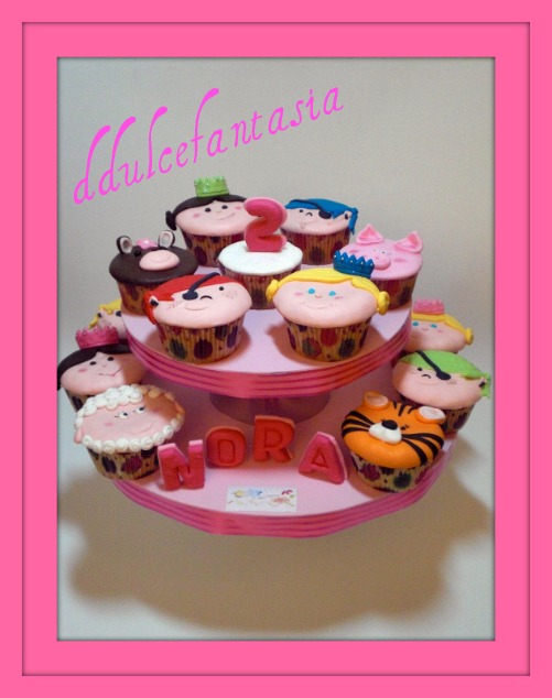 Tengo muchas tartas por subir,pero me moría de ganas por enseñaros nuestros primeros cupcakes decorados,como me gustan,se pueden hacer tantas cosas.Amalia es la mama de Nora y se puso en contacto conmigo, quería darle una sorpresa a su pequeña,le di la idea de las princesas y piratas y ella añadió la de los animalitos.Nos ha encantado el resultado,aunque debo de reconocer que son bastantes entretenidos,necesitas tiempo para todos los detallitos,pero luego es lo que los realza. Las princesitas como Nora. Los piratas para sus amiguitos del cumple. Y los animalitos.Los cupcakes son de vainilla,riquisimos por cierto,ya os pondré la receta.La masa ballina el sabor le gusta mucho a los niños.Gracias Amalia por confiar en nosotros.