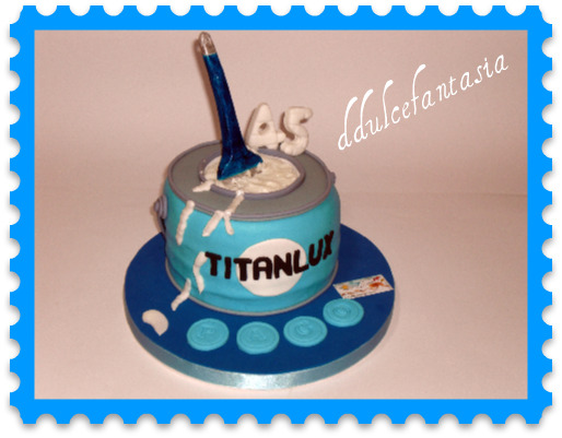 Esta tartita,nos la encargo Yaiza para su padre, quería sorprenderlo con un regalo especial y creo que lo consiguió.Cuando me pregunto que le podría, hacer a su padre y me dijo que era pintor,estaba cantado no creéis.Pensamos que seria sencillito,pero nada es lo que parece la mayoría de las veces.Cuando quieres hacer algo que parezca real,las medidas es muy importante e intentamos que fuera una lata proporcionada,decidimos ponerle esta ,marca y la casualidad quiso que su padre,usara la misma.,cosas del azar. Cubierta con masa de ballina,la brocha y los demás detallitos con cmc,la pintura la simulamos con glasa real.Bizcocho brownie de chocolate,relleno de ganache de chocolate blanco y almíbar de bayleis.Gracias Yaiza por confiar en nosotros.
