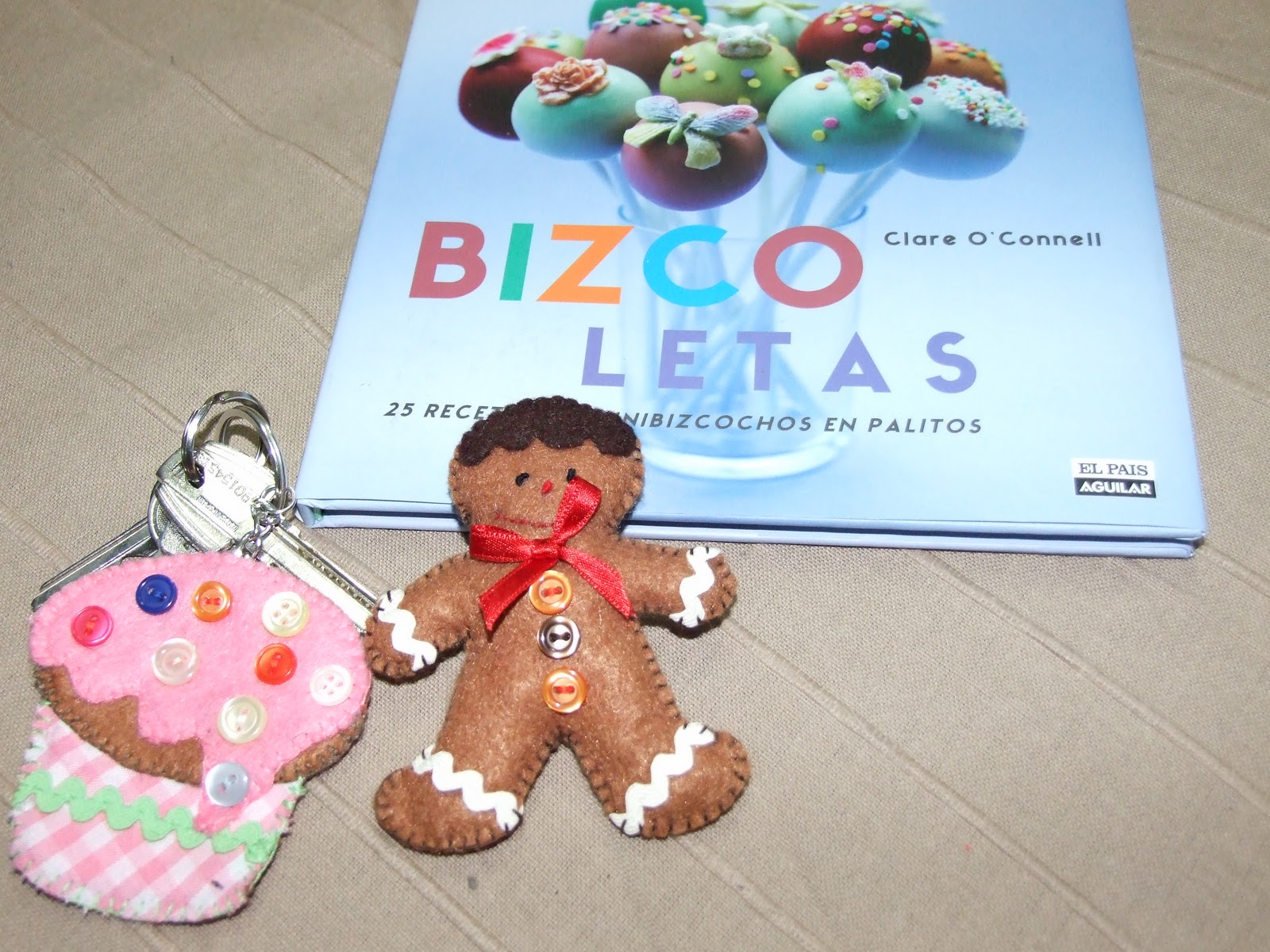 ¡Por fin! Por fin tengo un rato para publicar tranquilamente, con ganas y no con prisas como las últimas entradas. Y es que en estos días todos hemos ido pillados de tiempo: compras, maletas, viajes... pero que bien sienta pasar unos días con las personas que quieres: reír, discutir, recibir cariño y atenciones e... incluso, no tener que cocinar por unos días ;) Esta ha sido mi única aportación a la cena de nochebuena y es que mi tía y me madre se encargaron de todo lo demás. La foto no es demasiado buena pero es que no duró nada de nada pero, estaba tan rico que no quería perder la oportunidad de dedicarle un espacio en el blog y de recomendaros que lo hagáis. El tronco de navidad es un postre de larga tradición en mucho países europeos. Ya en el siglo XII la familia elegía un gran tronco, que engalanaba con cintas y era encendido por el más joven de la casa, para que ardiera durante toda la noche de nochebuena y así, cantar villancicos alrededor del fuego. Las cenizas eran guardadas hasta el año siguiente ya que se creía que eran milagrosas. Ingredientes (receta sacada del blog Cocinando en mi Isla Amarilla): 4 huevos 120 gr. de azúcar 120 gr. de harina 1 pizca de sal Relleno: Crema de turrón Antiu Xixona Cobertura: 200 gr. de chocolate con leche de cobertura 1 cucharada de mantequilla Batimos los huevos y el azúcar hasta que blanqueen y doblen el volumen, al menos 5 minutos. A continuación añadimos la harina con la pizca de sal y mezclamos suavemente con una lengua. En la bandeja de horno, ponemos papel parafinado un poco engrasado bien con mantequilla o con spray especial para engrasar moldes y vertemos la masa estirando con la espátula por toda la bandeja. Horneamos 10 minutos y sacamos del horno, retirando la plancha de bizcocho de la bandeja. Dejamos reposando mientras preparamos otro trozo de papel para horno. Ahora volteamos la plancha de bizcocho sobre el papel limpio y poco a poco vamos retirando el papel. Enrollamos sobre el papel limpio y dejamos enfriar. Una vez frío lo mentemos en la nevera para que se enfríe y así evitar que se rompa al rellenarlo. Para rellenarlo yo he usado la nueva crema de turrón de Antiu Xixona. Iba a hacer yo la crema pero probé esta y me entusiasmo: un suave sabor, se estira estupendamente y no hay trocitos de de almendra. Podemos rellenarlo de nata, de trufa, etc. A si que, estiramos la plancha de bizcocho y con ayuda de un cuchillo o espátula estiramos la crema que hayamos elegido. Derretimos el chocolate con la mantequilla al baño maría o bien en el microondas y vertemos por encima del tronco, al que habremos cortado una porción y la habremos puesto en un lateral. Por último, con ayuda de un tenedor hacemos una ondas en el chocolate derretido, imitando el veteado del tronco. Solo falta decorarlo como más nos guste y disfrutar de ello. No quería perder la oportunidad de enseñaros mis regalos navideños culinarios. Mirar que regalo más original: un pañuelo de seda pintado a mano por Nita Suri lleno de galletas y con el nombre de kinycookies por todos los lados, en color rojo ¡me flipó cuando lo vi! Además mi madre me hizo unos cuantos detallitos en fieltro: un llavero con forma de cupcake y un gingerbread man ¿no me digais que no son chulísimos? El libro de bizcoletas, junto con el de la Biblia de los Pasteles, son de mi hermano.