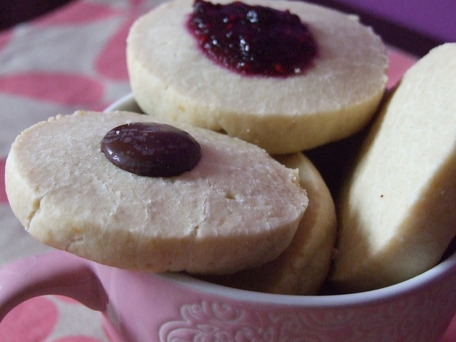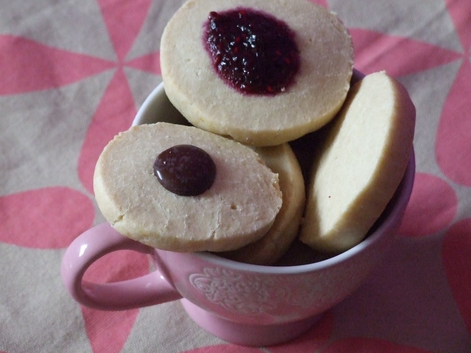 Whole Kitchen en su propuesta dulce del mes de noviembre nos invita a preparar una masa básica en pastelería: la pasta sablé Las pasta sablé se puede utilizar como base para muchas tartas pero en esta ocasión he decidido hacer unas galletas bretonas, suaves y deliciosas, aunque "contundentes". Utilizando la thermomix no tardé ni 5 minutos, aunque también podemos amasar a mano. Ingredientes: 200 gr. de mantequilla fría cortada en trozos 300 gr. de harina 150 gr. de azúcar 1 huevo 1 pellizco de sal 1/2 cucharadita de extracto de vainilla 50 gr. de chocolate fondant Sal en escamas Mermelada de frutas del bosque Triturar el azúcar 5 segundos a velocidad progresiva 5-10 hasta que se convierta en azúcar glass. Añadir la mantequilla y programar 30 segundos velocidad 5. Añadir el huevo y la vainilla y mezclar otros 30 segundos. Incorporar la harina y mezclar otros 30 segundos. Sacar del baso, amasar en forma de rulo, cerrar con un papel flim y dejar enfriar una hora. Pasado el tiempo, precalentar el horno, cortar la masa en trozos de 2 cm. más o menos y hornear 10 minutos. Derretir el chocolate en el microondas y colocar un poco encima de cada galleta. Espolvorear con una pizca de sal en escamas. Otras las podemos cubrir con mermelada de frutas del bosque o lemon curd.