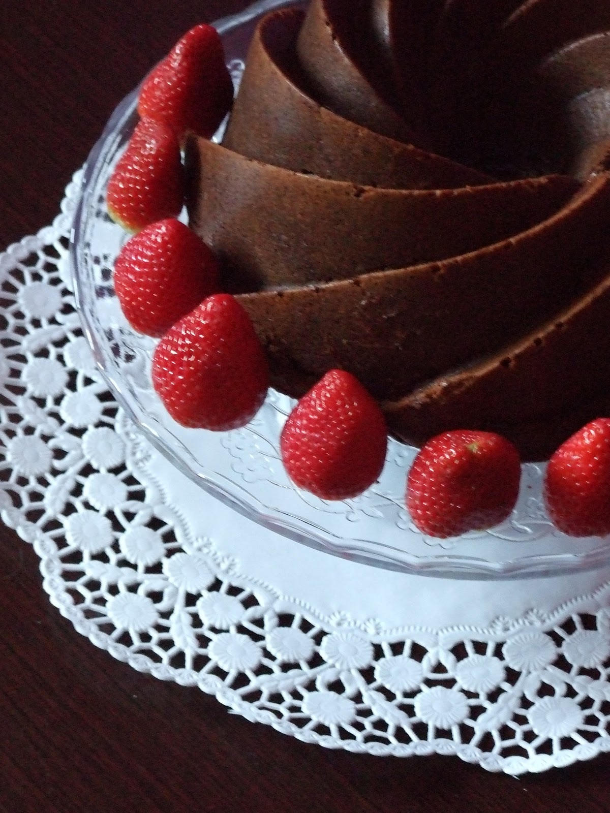 Todos sabéis, sobre todo si visitáis mi página de facebook, lo que me apetecía tener un molde Nordic Ware. "Sutilmente" dejé caer la petición cuando se acercaba mi cumpleaños y antes de navidad mis amigos Paz y David me lo regalaron. Llegaron las fiestas navideñas y el jaleo repostero propio de esas fechas y mi molde lloraba, metido en un cajita porque no lo estrenaba y yo muerta de ganas esperando que llegara el momento. Pasaron las navidades y ya tenía todo el tiempo del mundo pero... el molde es tan grande que, o invitaba a alguien o iba a tener bizcocho para los restos a si que ¿que mejor escusa para invitar a unas amigas a tomar café? Antes de ponerme en marcha e incluso antes de elegir la receta leí y releí el tutorial de Bea sobre como hacer un bundt cake para que saliera perfecto y seguí todos sus pasos. Y aquí tenéis el resultado, mejorable, por lo que tendré que repetir ;) pero delicioso de sabor. Aquí, en esta foto, podéis ver uno de los fallos y es que no conseguí que la masa se repartiera bien por todo el molde y quedaron unos agujeritos (parecía que lo habían picado las polillas) que afeaban mucho el bizcocho). Para la próxima vez, moveré más la masa dentro del molde, como indica Bea. CHOCOLATE BUNDT CAKE CON AVELLANAS Y FRESASComo base para la receta utilicé esta de Bea,Ingredientes: 200 gr. chocolate120 ml. de sirope de chocolate o coulis de chocolate250 gr. de mantequilla a temperatura ambiente200 gr. de azúcar4 huevos grandes1 cucharadita de extracto de vainilla340 gr. de harina30 gr. de avellana molida3/4 cucharadita de levadura1/2 cucharadita de bicarbonato sódico1/2 cucharadita de sal240 ml. de buttermilkEn primer lugar precalentamos el horno a 170º y engrasamos el molde con ayuda de un spray de aceite y una brocha de silicona. Estos sprays son muy útiles para engrasar los moldes (tanto los nordic ware como cualquiera) y conseguir un perfecto desmoldado. Son más limpios y prácticos y hacerlo untando aceite o mantequilla, aunque si no lo tenemos siempre podemos coger un trozo de mantequilla con un papel de cocina y engrasar el molde. Si no tenemos buttermilk (yo la compro en los supermercados ALDI) la tendremos que hacer nosotros en casa para lo que mezclaremos 240 ml de leche con dos cucharadas de vinagre ó zumo de limón. Dejaremos reposar la mezcla durante 10 minutos y ya tendremos nuestra buttermilk (tiene que tener aspecto de leche cortada y estar más espesa). Comenzamos batiendo la mantequilla con el azúcar y tendremos paciencia en este paso. Yo lo hago con una batidora de varillas normal y tardo bastante tiempo hasta que todo el azúcar está integrado, blanquea y dobla el volumen. Mientras derretiremos al baño maría o en el microondas (con la función de descongelar) el chocolate junto con el sirope. Cuando la mantequilla y el azúcar estén batidos le añadiremos uno a uno los huevos, ligeramente batidos. Integramos uno y añadimos otro. Después añadimos a la mezcla el chocolate, integramos todo y comenzamos añadiendo la harina, en la que habremos mezclado la avellana molida, la levadura (ojo, no tenemos que añadir a este bizcocho tanta levadura como a otros, con la cantidad que indica es suficiente), el bicarbonato y la sal. Añadiremos esta mezcla en tres veces: un poco de la mezcla de harina, mezclamos bien, y un poco de buttermilk y mezclamos bien, así hasta tres veces. Vertemos la masa en nuestro molde y dejamos que ella misma llene todos los huecos. Después movemos el molde suavemente hacia adelante y atrás y golpeamos el molde contra la encimera (protegerla con un paño de cocina) para evitar que nos salgan los agujeros. Colocamos el molde en la rejilla del horno (nunca en la bandeja) y horneamos durante 40 - 45 minutos, pinchando con una brocheta para comprobar cuando está horneado (ya sabéis, tiene que salir limpia). Cuando esté horneado, sacamos y dejamos reposar nuestro bizcocho dentro del molde sobre una rejilla durante 10 minutos. Pasado este tiempo, tenemos que desmoldar el bizcocho para que no nos coja humedad. Bea indica que hay que moverlo un poco y notaremos como se va despegando. En mi caso no fue así, lo moví y lo moví y nada, a si que "cundió el pánico". Empecé a pensar: con lo bonito que es y se me va a romper, con las ganas que yo tenía y no me va a salir. Finalmente decidí voltearlo sobre la rejilla y... por arte de magia (o del spray desmoldante y lo bueno que son estos moldes) cayo suavemente sobre la rejilla perfecto! Si lo acompañáis con unas fresas, el bizcocho realza aún más su sabor.