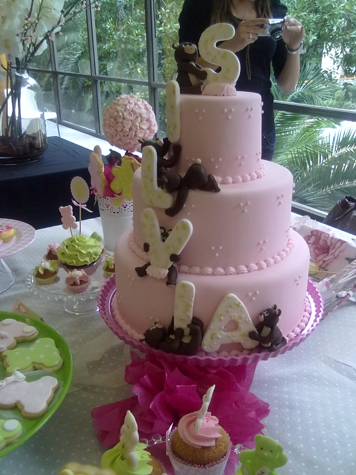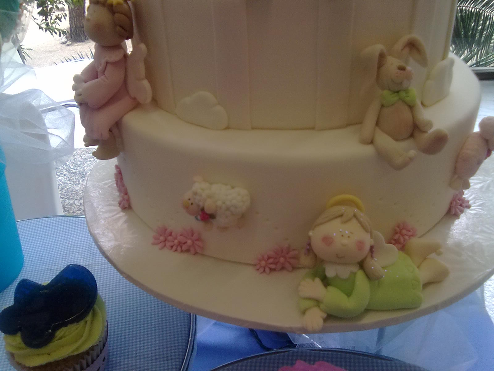 Hoy os enseño la tarta que hice para Julian. Le encanta la caza a si que, inspirandome en una de de Megasilvita salió esta simpática tarta. En la tarta tampoco podía faltar su sobrino recién nacido a si que lo puse junto a un lago con un patito, que todavía es muy pequeño para ir a cazar! La verdad que fue una de esas tartas que me divertí mucho haciendo. Tenía la idea clara y poco a poco iba saliendo como yo quería, así que aquí os dejo al pobre Julian, que no encuentra al conejo. La tarta era la "infalible", ya sabeis: bizcocho de chocolate blanco con almibar de frambuesa y cheescream de chocolate... deliciosa!!!! Ah! Se me olvidaba contaros algo. ¿Sabeis como hice el pelo de Julian y los arbustos de jara? No tengo pistola de fondant, a si que me apaño con un "estruja ajos" (no se si se llamá así, pero seguro que así lo entendeis todos) que compré en Ikea y no veais como me da el apaño!