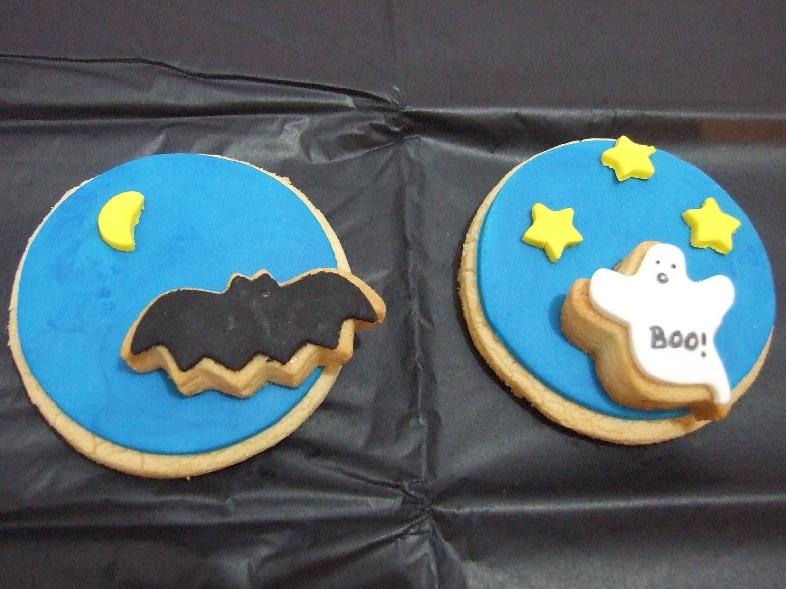 Si decidieras darle un cambio a vuestra vida ¿como lo harías? Si montarais un negocio ¿de que sería? Si fuera una bakery ¿como la llamariaís? Pues en mi caso "Sabores y colores" ¿Que os parece? Si, quería compartir con todos vosotros/as esta nueva ilusión, esta nueva aventura (tal vez, teniendo en cuenta los tiempos que corren, debería decir esta locura). Debido a la situación de crisis generalizada que estamos sofriendo, el próximo mes termina mi contrato y no será renovado, a si que, como muchos españoles más entraré a formar parte de la mayor "empresa" de España; el paro pero... he decidido arriesgarme e intentarlo! Al menos no tendré que echarme en cara a mi misma que no lo intenté. Si sale bien será una experiencia maravillosa y si sale mal pues... seguro que también será una buena experiencia. Pero no estaré sola en esta tarea, María, del blog En Dulce será mi socia. Juntas, y con mucho esfuerzo, estamos creando "Sabores y Colores". En cuanto tenga alguna foto (el local está en pleno proceso de trasformación) os pondré una cuantas. Y como no podía ser de otro modo, tenía que daros la noticia acompañada de galletas, que para eso el blog se llama Kinycookies!!!! Sobre la temática... pues la que pide el día!!! Feliz Halloween y feliz semana!