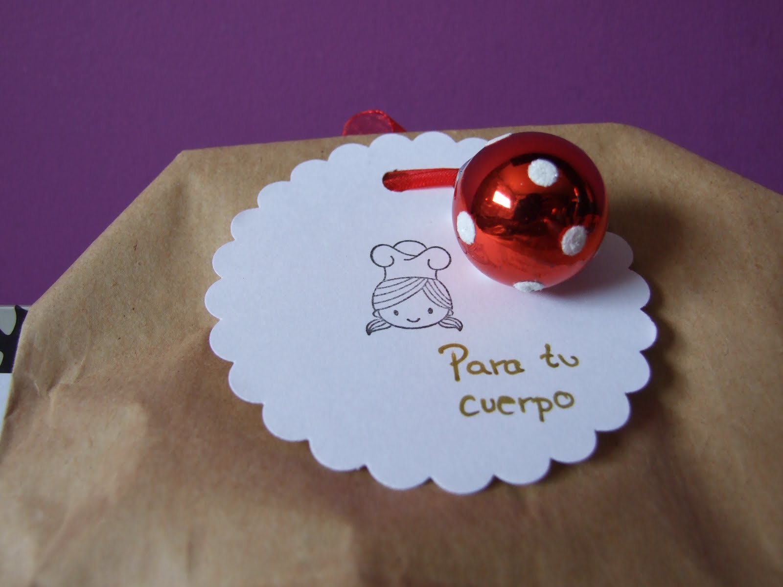 No me gusta dejar las cosas para el último momento, y menos algo que me hace tanta ilusión como el regalo de mi AIG pero este año, he querido pedir algo por internet, que creo que le gustará, porque lo pedía en su entrada. Todas sabemos que hay tiendas on-line que no son tan formales como a las que estamos acostumbradas, al menos yo: Decake, For the cakes, Enjuliana o My lovely food, a las que haces un pedido y en dos días, como mucho, lo tienes en casa, a si que hice un pedido a otra tienda on-line y aquí estaba en casa, una semana después esperando. Ya, preocupada, llamé a la tienda y me dijeron que mi pedido estaba retenido porque les faltaba un producto ¡y ni me avisaron ni nada! En fin, que aquí me veis con todo preparado, empaquetado y esperando "lo que faltaba". Por fin llegó ayer (después de dos semanas) y hoy, al límite, he enviado el paquete. En él va un bote de mermelada casera, que espero que le guste a mi AIG, porque está hecho con mucho cariño. Ingredientes (receta sacada del blog chocolate y pimienta: 300 gr. de frutas del bosque (yo las compro en Lild) 250 gr. de azúcar 40 gr. de limón (sin cáscara, parte blanca ni pipas) Poner en un bol la fruta recién sacada del congelador y añadir 100 gr. de azúcar. Dejar descongelar y macerar la fruta durante 6 horas. Yo he hecho la mermelada en la thermomix poniendo todos los ingredientes en el vaso y programando 30 minutos a 100º velocidad 1. Si queda demasiado líquida, podemos programar otros 5 minutos a la misma velocidad y temperatura, teniendo en cuenta que cuando enfríe espesará. Si no tenemos thermomix, ponemos a cocer los ingredientes a fuego lento hasta que espesen, durante, al menos 30 minutos. Aquí tiene un adelanto mi AIG, de lo que va a recibir, pero poquito, que no quiero desvelar el secreto!