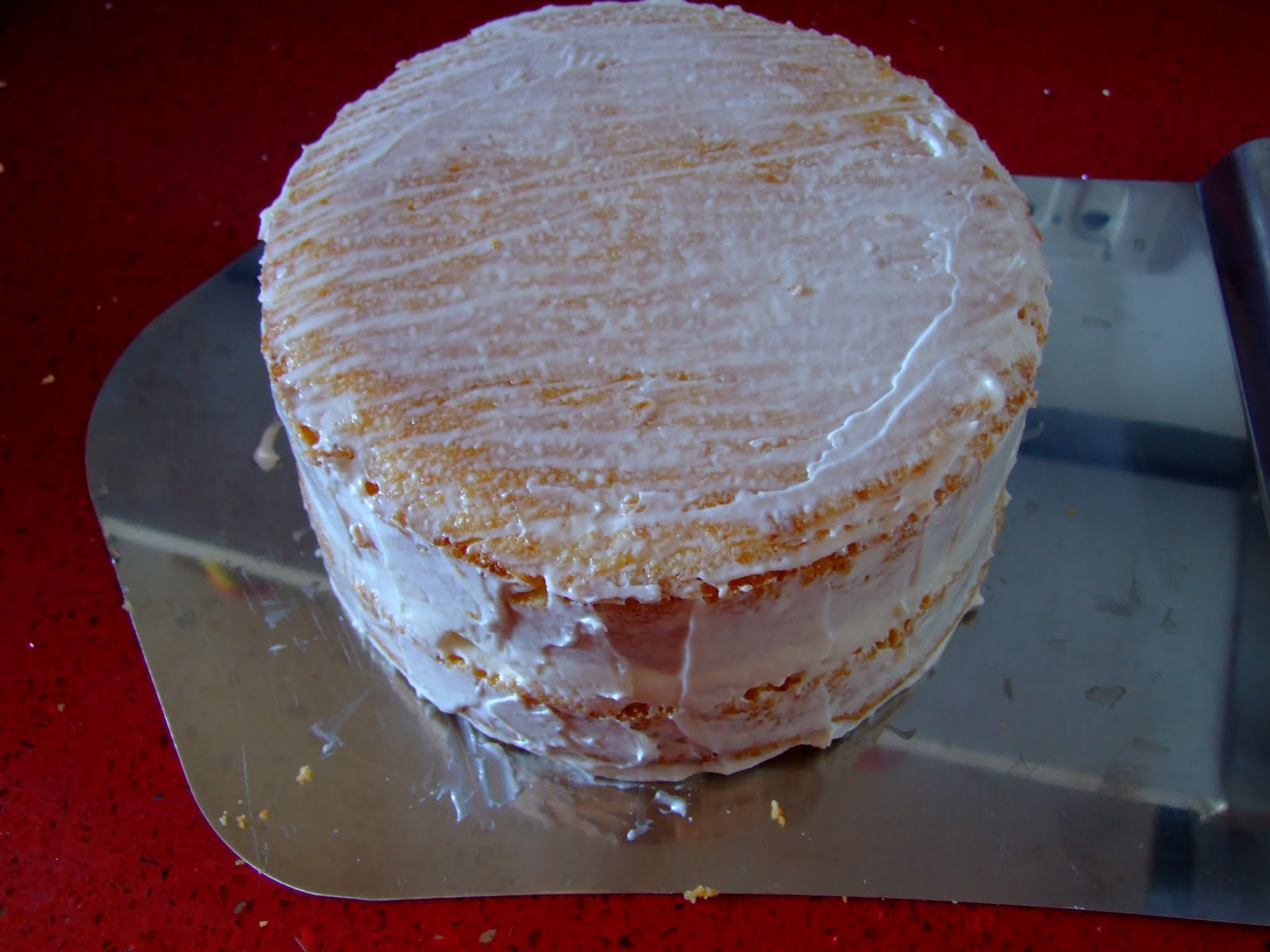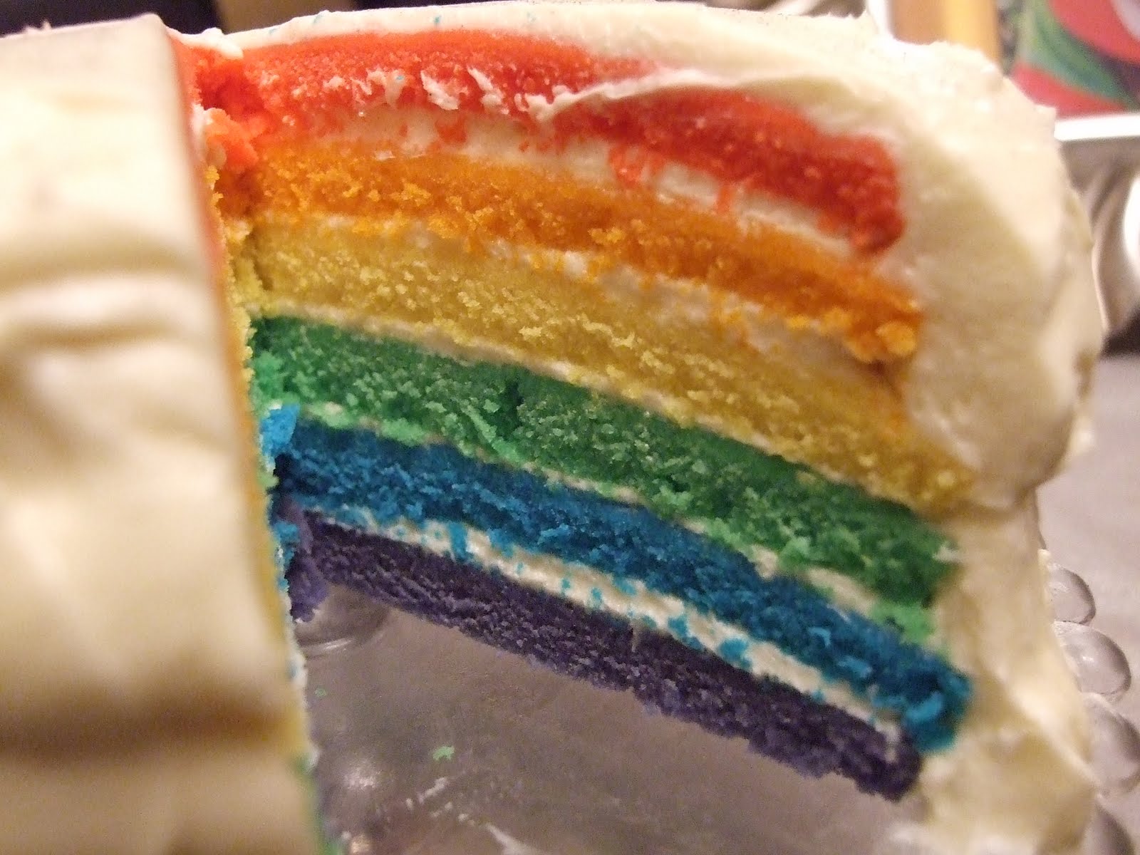 El sábado celebramos el cumpleaños de mi amiga Maru y yo le dije que que tarta quería. Ella me dijo que su favorita era la Red Velvet pero como ya se la habia hecho alguna que otra vez y ella es una persona "llena de color" decidí sorprenderla con esta rainbow cake, que le encantó. La primera vez que vi esta tarta en algún blog, no recuerdo cual, me encantó: por fuera parece "sosa", blanca, sin "ná" pero la abres y ¡Sorpresa! una explosión de color. En esta ocasión seguí la receta del blog "las recetitas (de Mirasesns)" y quedó riquísma. Ingredientes: Para los bizcochos (yo hice 6 en lugar de 7): 270 gr harina 30 gr maicena 1 cucharada de levadura en polvo 1/2 de sal 300 ml de buttermilk* 4 claras de huevo (para no desperdiciar huevo utilicé la claras pasteurizadas de Mercadona) 225 gr de azúcar 125 gr. de mantequilla en punto pomada 100 gr. de chocolate blanco Colorantes: violeta, azul, verde, amarillo, naranja y rojo (yo utilicé Americolor) Si no tenéis buttermilk, yo no soy capaz de encontrarlo por ningún sitio, podéis hacerlo añadiendo una cucharada de zumo de limón o vinagre de vino a 300 ml. de leche y dejándolo reposar unos 10 minutos. En esta ocasión yo he hecho el bizcocho con mi "amiga" thermomix. En primer lugar monto las claras y las reservo. Después mezclo la mantequilla con el azúcar. A continuación vierto el chocolate blanco y el buttermilk. Cuando todo esté integrado (no os puedo decir a que velocidad y durante cuanto tiempo la programé porque como aún no estoy demasiado acostumbrada, lo iba haciendo sobre la marcha, y después añadí los ingredientes secos previamente mezclado. Por supuesto podemos hacer el bizcocho del modo tradicional, ayudándonos con una batidora de varillas para montar las claras y mezclando el resto de ingredientes. Saqué la mezcla del vaso y lo mezcle manualmente con las claras. Pesé la crema resultante y la dividí en 6 partes iguales (no os preocupéis si creéis que los bizcochos os van a salir pequeños, porque como son 6, al montar la tarta nos quedará alta), que teñí, cada una de un color. Engrasé 6 moldes de usar y tirar. Horneé cada bizcocho unos 15 minutos a 160º. Dejé enfriar los bizcochos y los puse unos encima de otros separados por un papel sulfurizado. Los metí durante toda la noche en la nevera. Relleno y cobertura 250 gr. de mantequilla 300 gr. de queso crema 160 gr. de azúcar glass La receta original también lleva nata pero yo en este caso únicamente utilicé estos ingredientes. Para empezar pulvericé el azúcar con la thermomix para convertirla en glass, 20 segundos a velocidad progresiva 5-9. Batí la mantequilla y le añadí el queso y el azúcar. Para montarla, ya sabéis, ir colocando plancha de bizcocho, crema, plancha de bizcocho, crema y así hasta terminar y cubrir la tarta completa.