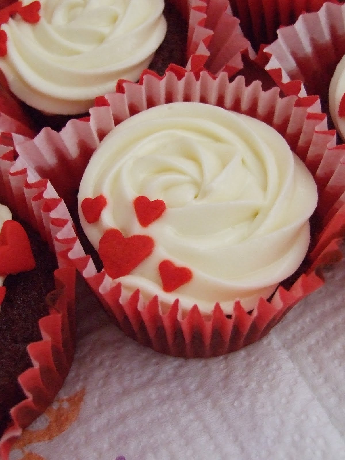 A estas horas Mayu y Juan ya son marido y mujer y este es el postre de su boda. Son 160 cupcakes y una pequeña tarta que corona la torre y sirve de base para una caricatura muy chula de los novios. Los cupcakes son unos "falsos" red velvet y digo falsos porque ellos quisieron que para la base utilizara los muffins de doble chocolate pero teñidos de rojo y el frosting fuera una chesscream de chocolate blanco. Como veis en la foto, algunas cápsulas se despegaron del bizcocho. Me extrañó muchisimo ya que las cápsulas son de muy buena calidad y nunca me habia pasado. Después de preguntar a expertas "cupkeras" (Alma, de Objetivo: cupcake perfecto, Rodolfo, de For the cakes y Alcan Isla Amarilla, de Sweet Place A Coruña) llegué a la conclusión de que esto había pasado por no dejar la masa reposar antes de sacarla del molde después de hornearla. Me explico: para hacer los cupcakes puse las cápsulas dentro de un molde de muffins, horneé y nada más sacar del horno los puse a enfriar en una rejilla. Me han recomendado dejar reposar los cupcakes dentro del molde como mínimo 5 minutos, a si que ya lo se para la próxima vez. Gracias a los tres!!! Estaba claro que era un problema y que tenía que buscar una solución a si que busqué en mis caja alguna cinta roja y coloqué una cinta alrededor del cupcake, y así, además de solucionar el problema, quedaron muy chulos. Espero que disfruten de su postre y que sean muy felices!