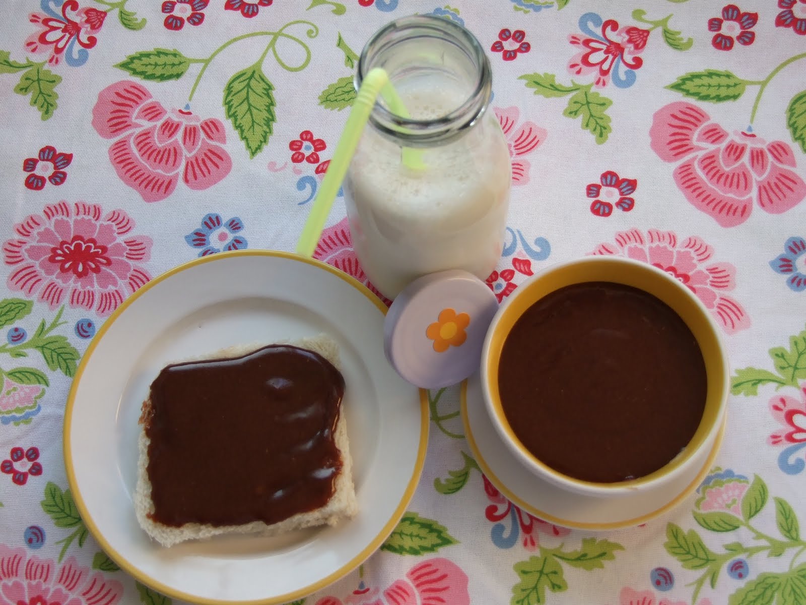 En cuanto puse la thermomix en mi cocina comencé a buscar recetas, esas que hemos visto en blogs de cocina pero que nos da pereza hacer de forma tradicional y eso fue lo que me pasó con esta crema de chocolate. Recuerdo cuando mi madre hizo esta receta (o una parecida) cuando era pequeña que consistía en mezclar todos los ingredientes de forma enérgica dando 25 vueltas... he estado buscando esta receta porque me resultaba muy curioso lo de las 25 vueltas pero el intento ha sido fallido a si que opté por esta receta que saque del blog Velocidad cuchara, aunque la he visto en alguno más, aunque ahora no recuerdo en cuales. Es muy cremosa y con un intenso sabor a avellana. Sin duda, es mucho más cara que la que se compra ya hecha pero claro, su sabor nada tiene que ver, además, es ideal para para rellenar nuestras tartas o... para merendar, untada en pan como cuando eramos peques. Ingredientes (como para un litro de crema de cacao): 100 gr. de chocolate negro 100 gr. de chocolate con leche 100 gr. de chocolate blanco 100 gr. de avellanas 150 gr. de azúcar 150 ml. de aceite (yo usé de girasol) 200 ml. de leche Triturar el azúcar y las avellanas 20 segundos a velocidad 10. Incorporar los chocolates y triturar a velocidad máxima durante 10 segundos. Añadir la leche y el aceite y programar 7 minutos a 50º velocidad 4. Dejar enfriar antes de probar... imposible no meter el dedo...