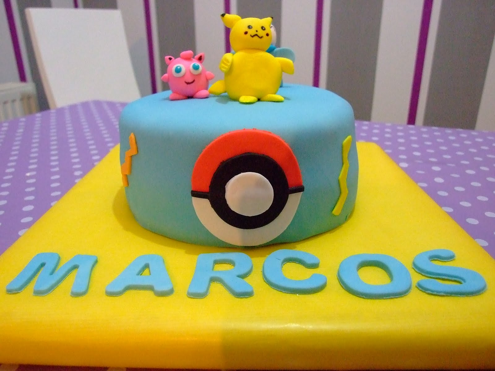 Aquí os dejo la tarta de los Pokemon que hice para el cumple de Marcos. Pensé que iba a ser más complicado por el modelado de los "bichos raros" y me empecé a acordar del desastre de la tarta de gormiti y me eché a temblar... Pero que vá, fue superdivertido hacerlos. Lo que pasa que no me preguntéis por los nombres que solo me acuerdo del de Pikachu. En esta ocasión elegí un bizcocho de chocolate blanco y lo rellené con el cheesecream de chocolate blanco pero como era época de fresas, pensé que le podía dar un toque fresquito. A si que dejé macerar un poquito las fresas en azúcar y las partí en trozos, repartiéndolas por los dos pisos de la tarta. Me preocupaba que la fruta quedara seca ya que se iba a comer al día siguiente y no me gusta meter las tartas de fondant en la nevera (por eso suelo utilizar rellenos que no lleven huevo o nata) pero que va, estaba muy buena. Aquí teneis la tarta completa, sencilla pero "resultona".
