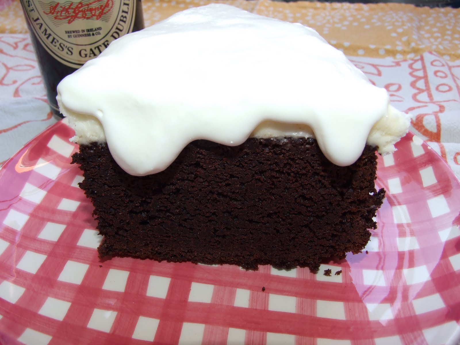 Solo puedo decir UUUUUUUUUUUUUUUUUUUUUUUUMMMMMMMMMMMMMMMMMMMM!!!!!!!!!!!!!!! Este fin de semana he hecho dos de las tartas que más ganas tenía de hacer y de probar: el rainbow cake y esta tarta de cerveza Ginness, si, si, con cerveza negra. Queda espectacular, tanto de presencia como de sabor. Cuando la saqué a la mesa reté a los comensales a que adivinaran el "ingrediente secreto": café, especias, trufa... fueron algunos de los ingredientes pero nadie acertó y cuando lo dije se quedaron helados. Cada vez que veo una tarta "rara" o diferente, o con algún ingrediente extraño me lanzo a hacerlo, como la tarta de tomates verdes tengo que hacerla! En esta ocasión he tomado la receta del blog Velocidad Cuchara y la pena es que solo os puedo enseñar este trocito porque no me dio tiempo a hacer la foto y esto es lo único que sobró. Os pongo la receta para thermomix pero como sabéis la podemos adaptar perfectamente si no tenemos la "maquinita". Ingredientes (para un molde de 20 cm, sale muy alta): Para la base 250 gr. de harina 75 gr. de cacao sin azucar (tipo Valor) 400 gr. de azúcar 1 sobre de polvo de hornear (levadura tipo Royal) 2 cucharadas y media de bicarbonato 250 ml. de cerveza Ginness 250 gr. de mantequilla en punto pomada (a temperatura ambiente) 140 ml. de nata para montar 2 huevos 1 cucharadita de esencia de vainilla Para la cobertura o frosting 300 gr. de queso crema 150 gr. de azúcar glass 350 gr. de nata En primer lugar mezclaremos todos los ingredientes secos (harina, levadura, cacao, azúcar y bicarbonato) durante 15 segundos a velocidad 5. Reservamos. Ahora pondremos la cerveza y la mantequilla en el vaso, mezclaremos durante 3 minutos a 50º velocidad 2. Añadiremos la nata, los huevos y la vainilla y batiremos 30 segundos a velocidad 2. Cuando esté todo integrado, añadir poco a poco la mezcla de ingredientes secos a velocidad 3 y sin tiempo, hasta que esté perfectamente mezclado. Verter la masa en un molde redondo de 20 cm previamente engrasado y hornear durante 50 minutos a 180º. Una vez frío el bizcocho preparamos el frosting montando la nata con el vaso de la thermomix perfectamente limpio y seco. Ponemos la mariposa y añadimos la nata, programando a velocidad 3 y medio y sin tiempo. Hay que estar muy atento porque se puede cortar (a mi se me cortó dos veces, hasta que lo conseguí). Cuando esté montada la reservamos y añadimos al vaso el queso crema y el azúcar, una vez integrado vertemos sobre la nata montada y con movimientos suaves mezclamos ambas cremas hasta conseguir el frosting que pondremos encima del bizcocho.