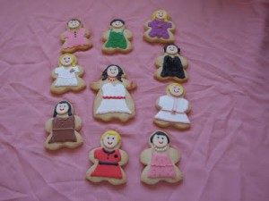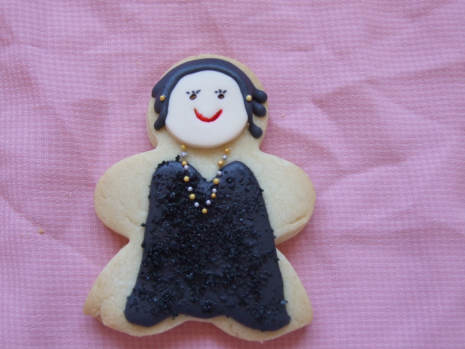 Antes de que penséis nada, aunque seguro que ya lo habéis hecho, tenéis razón, tenía que haber planchado la tela pero, a veces las prisas... en fin, no parecía tan arrugada cuando la puse pero al ver las fotos... bueno, la arruga es bella ¿no? Vamos a lo que vamos; aquí tenéis estas amigas en forma de galleta. Pilar se puso en contacto conmigo porque quería hacerle un regalo especial a sus amigas en el día de su cumpleaños. Y este es el nuevo uso de las galletas; en forma de "etiqueta personalizada" para identificar el sitio de cada persona en la mesa. Pilar me fue diciendo el nombre de cada amiga y sus características: morena, pelo corto, vestido negro, collar largo, pendientes y el nombre, que iba en una etiqueta. Fue muy divertido ya que cada una era diferente y lo mejor de todo fue que sus amigas se identificaron con las galletas! Aquí tenéis las etiquetas (la cinta, que venía al pelo la compré en Butlers, en la tienda que hay en el centro comercial Xanadú, de Madrid) . Como os comenté en mi anterior entrada, en cuanto tuviera el enlace del programa os lo podría, a si me veis en acción y me conocéis un poquito más. No seáis demasiado críticos, que estaba un poquino nerviosa... http://tv.canalextremadura.es/tv-a-la-carta/videos/kinycookies-11-de-julio