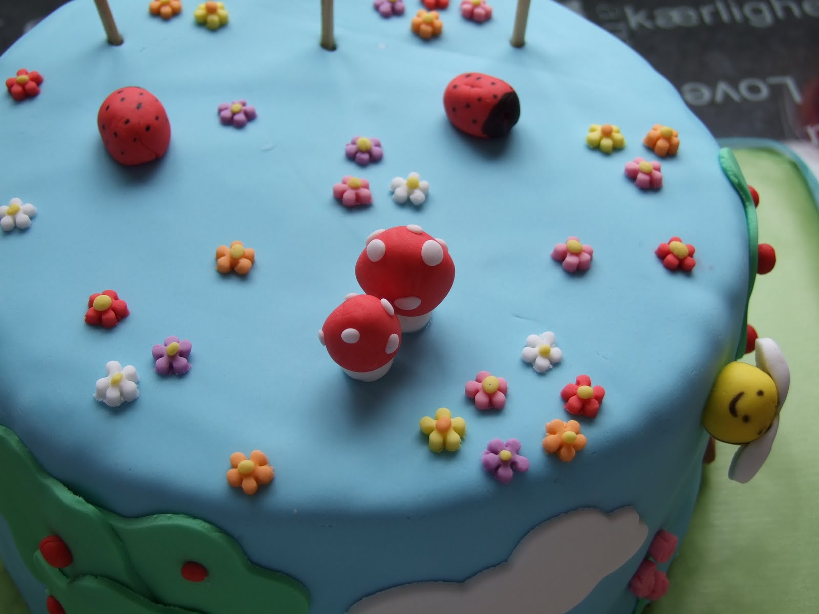 Tranquilos, tranquilos, que nos os voy a contar nada raro.Como sabeis Claudia hizo los años hace unas semanas. Para la guarderia su madre, mi amiga Maru, me encargó unas galletas y unos cupcakes para las profes. Pero Claudia no habia celebrado sus cumpleaños con sus amigitos a si que entre Maru, su padre y yo le preparamos esta fiesta. El primer "problema" fue que Claudia se decidiera de que queria su fiesta, unos dias era de Tarta de Fresa, otros de Dora... pero al final ganó Pocoyó. Como a Carlos, el padre de la peque le encantan las flores y las plantas y a Maru también le gusta mucho el campo, pensé en hacer un jardin y "meter" en él a Pocoyó y todos sus amigitos. El tiempo se me hechaba encima porque además de la tarta prepare una red velvet para los "mayores", que casi difrutamos más de la fiesta que los peques y un par de brazos gitanos salados, no me daba tiempo a modelar todas las figuras (solo está modelado Pajaroto) a si que optamos por una solución rápida: poner muñecos de plastico. Aquí teneis a toda la "pandi".La tarta era un bizcocho bombon de chocolate blanco y en medio, una capa de chocolate negro. Lo empapé en almibar (aunque el bizcocho de chocolate blanco queda muy jugoso) y lo rellené con ganaché de chocolate con leche y mermelada de albaricoque. Para cubrirlo utilicé buttercream de oreo. Estaba riquiiiisimo!!!! Y aquí os dejo algunas fotos de la fiesta, para que veas que pensamos hasta en el mínimo detalle: servilletas y menaje de Pocoyó, etiquetas para las botellas, manteles... y un Pocoyó gigante presidiendo la fiesta.