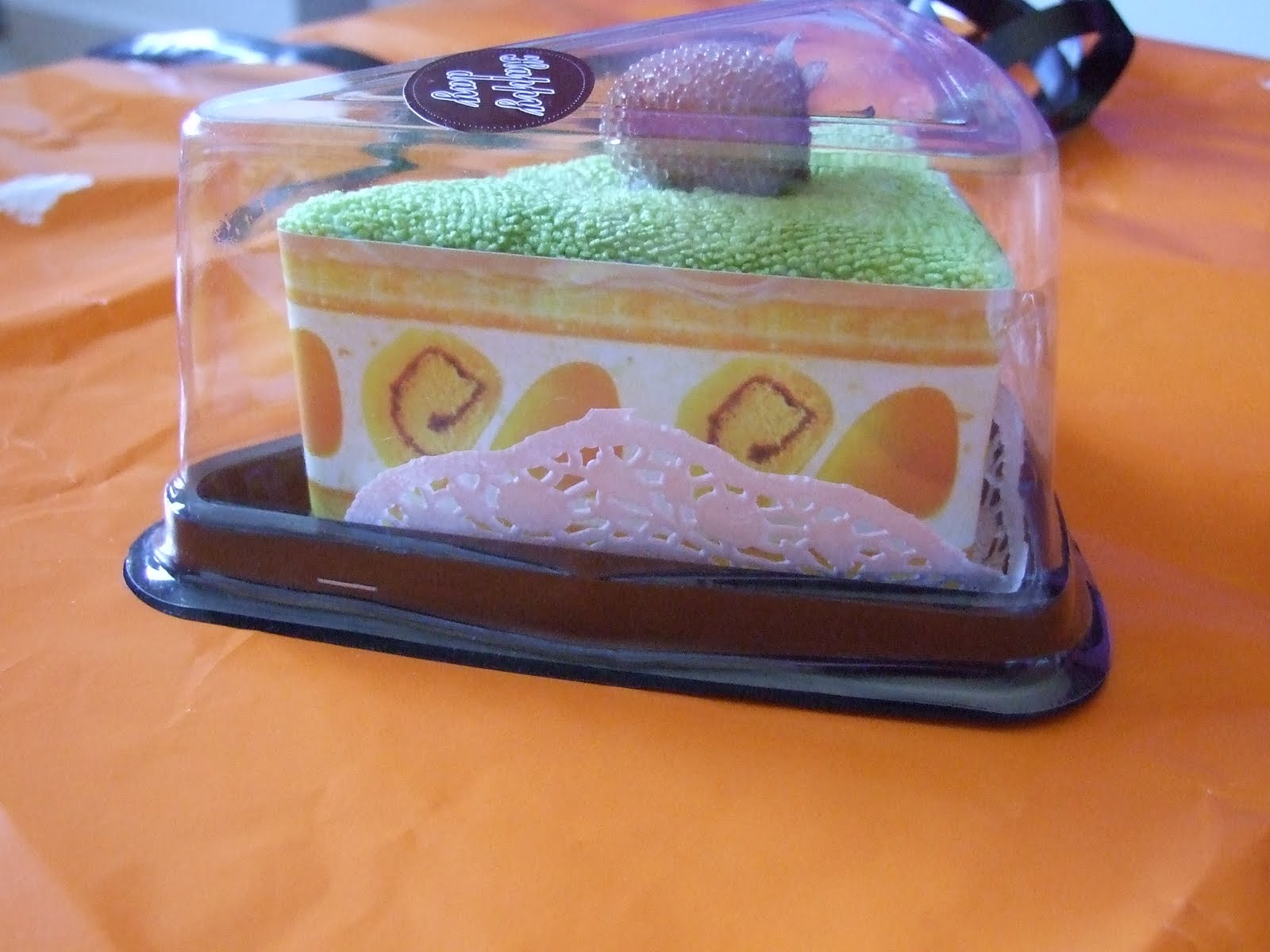 Después de la curiosidad que ha despertado el estabilizante de nata que usé para hacer el ganaché de chocolate blanco, os dejo este breve post a cerca de lo que yo se sobre el estabilizante de nata y donde comprarlo. El estabilizante de nata sirve para que la nata nos monte firme y permanezca dura durante más tiempo. ¿No os ha pasado nunca que habeis montado nata y al cabo de un rato se ha bajado y parte se a convertido en "agua"? Eso es el suero que suelta la nata y lo que hace el estabilizante es retener toda esa humedad. El ganaché lo hice el viernes y como me sobró un poco lo guarde en un tarro, cerrado herméticamente y aún sigue igual. En mi caso utilizo el estabilizante que veis en la foto, de la marca ALBONA. Lo descubrí de casualidad "paseando" un día por el Aldi. En el paquete vienen ocho sobres (cada sobre se recomienda para unos 250 ml., como vereis en las indicaciones de la foto) y me costó unos 50 céntimos (el paquete). Como ya os he dicho en alguna ocasión en Mérida, ciudad donde vivo, no hay ninguna tienda especializada en reposteria, con lo cual tener acceso a estos productos, es dificil. Descubrí, que de vez en cuando, en Aldi o Lidl traen productos y utensilios relacionados con la cocina y la reposteria que no encuentro por aquí y que tengo que comprar on-line a si que todas las semanas, me "paso" por sus catálogos on-line, para no perderme ninguna oferta que me interese. Cuando veo algo interesante lo suelo poner en mi perfil de facebook, para que todas os entereis, sin ir más lejos, la semana pasada puse una oferta para el miercoles de cápsulas decoradas para cupcakes, son más bien malas (se transparentan al hornearlas, pero poniendo dos en lugar de una se soluciona), pero es mejor que las cápsulas blancas y normales que encuentro por aquí. El día que compré el estabilizante también me traje para casa un preparado de muffins de arándanos (también lo habia de chocolate y con perlas de chocolate) y un preparado de mousse de stratachela. No soy muy partidaria de los preparados pero por un euro y pico, pensé que nunca está demás tener algo así en la despensa, para "por si acaso", como digo yo. También habia gelatina neutra, brillo para frutas y alguna cosa más. Si no lo encontrais en el Aldi, ya sabeis que son ofertas puntuales y que nos las tienen siempre, os dejo algún enlace donde podreis encontrarlo, eso si, mucho más caro.http://www.clubcocina.net/tienda/product_info.php?products_id=655http://www.decake.es/varios-es/product1733En breve os enseñaré la tarta que rellené con este ganaché de chocolate blanco.Ah! Cambiando de tema: mi hermano y Gema, su chica, han estado en casa. Gema me ha traido un regalo, un pañuelo muy bonito y decorando el paquetito venia esto. ¡Me parecio chulisimo y queria compartirlo con todos vosotros! Parece una porción de tarta pero es una esponja!