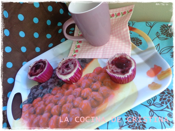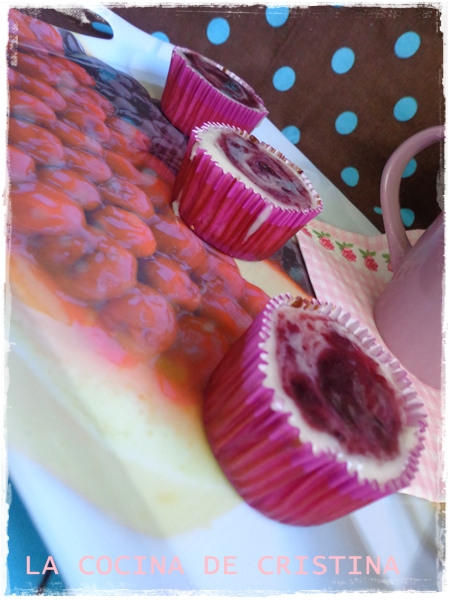 Lo siento para las que estéís a dieta pero el verano a dado para mucho y e tenido bastantes eventos a los que asistir , por lo que las recetas dulces se han multiplicado jajajaHoy pasamos de tartas y volvemos con mis queridisimos cupcakes, y que mejor que con estos de tarta de queso mi postre preferido ;)vamos a ellos INGREDIENTES:. 150 g de galletas. 70 g de mantequilla a temperatura ambienteINGREDIENTES PARA LA MASA. 500 g de queso crema. 175 g de azúcar. una pizca de sal. 10 ml de zumo de limón. 1 cucharada de harina. extracto de vainilla ( 1 cucharadita de cafe). 60 g de yogur blanco azucarado. 1 yema de huevo "L". 3 huevos "L" INGREDIENTES CREMA DE QUESO Y CHOCOLATE BLANCO CON MERMELADA DE ARÁNDANOS. 250 g de queso de untar. 400 g de chocolate blanco. 60 g de azúcar glass. 3 nubesPREPARACIÓN DE LAS CUPCAKES: . Lo primero que aremos será la base , triturando las galletas y mezclando con la mantequilla , esta mezcla la pondremos a modo de base. meter en la nevera mientras se hace la masa . Para la masa pre calentamos el horno a 250 ºC. ponemos el queso en un bol amplio y batimos un poco, añadir la sal y 75g de azúcar y batir hasta que este integrado todo. ahora añadimos el resto del azúcar y la harina y mezclar muy bien. añadimos el zumo de limón y el extracto de vainilla , el yogur y mezclar todo. por ultimo añadimos la yema y los 3 huevos y volvemos a mezclar. verter la mezcla en los moldes y hornear a 180ºC unos 20 o 25 minutos. dejar enfriar y meter en la nevera mejor de un día para otro . Para la cobertura solo tenemos que batir bien todos los ingredientes menos la mermelada y poner por encima de las cupcakes . añadir mermelada a gusto y listasssssss!!!!!!!!!!! Espero que os gusten un beso!!!