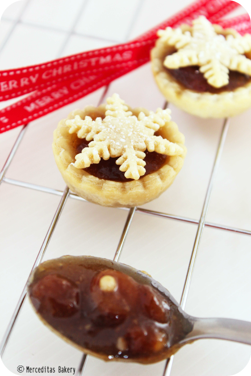 Estos pastelitos son un dulce típico del Reino Unido, se consume tradicionalmente en Navidad y Año Nuevo. Suelen tener una cubierta de masa, ya sea entera o en forma de estrella, aunque también hay versiones sin ella, conocidas como mince tarts "tartaletas de mince". Los mince pies se rellenan con mincemeat, y se trata de una conserva hecha con manzana, frutos secos, pasas, especias y grasa. También existe la variación en salado, cuyo contenido es de carne "minced meat". Ingredientes Masa Brisa 175gr. de harina de trigo 1/2 cucharadita de sal 1 cucharada de azúcar glas 113gr. de mantequilla súper fria cortada en dados 30-60ml. agua helada Ingredientes Mincemeat 1 manzana 25ml. de vinagre de manzana 50gr. de azúcar moreno 50gr. de pasas sultanas 50gr. de ciruelas pasas 50gr. de nueces o almendras Media naranja 1 limón 1 cucharada de mantequilla 1 cucharadita de mixed spice (canela, nuez moscada, clavos de olor, jengibre en polvo) 1 cucharada de licor (Brandy, Ron, etc...) Preparación Mincemeat Disolver azúcar moreno en el vinagre, añadir la manzana muy picada. Añadir la mantequilla en daditos. Dejamos cocer a fuego muy suave la preparación anterior, cuando la manzana esté mas oscura, añadir las pasas y ciruelas, todas ellas cortadas a igual tamaño. Agregar las especias. En un vaso, preparar el zumo de naranja y limón e incorporarlo a la olla junto con sus ralladuras. Picar las almendras y/o nueces en trocitos y echar a la olla, mezclando bien. Dejar cocinar a fuego muy suave, hasta que tenga un color oscuro y una textura lo mas parecida a una mermelada espesa. Cuando esté listo de textura, añadir el licor deseado y dejar 1 minuto más o menos. Conservar en tarros de cristal esterilizados. Ver aquí Preparación Mince pie Colocar todos los ingredientes, menos el agua, en el robot y batir hasta que se convierta en una masa arenosa, parecida al pan rallado. Añadir agua poco a poco y batir hasta que esté unida. Lo mejor es echar muy poquita agua, si os pasáis tendréis que añadir más harina. Ahora con las manos, la trabajáis lo justo para hacer una bola y dividirla en dos partes iguales. Entre dos papeles de horno, hacer dos discos y refrigerar 1 hora. Estirar la masa con un rodillo y dejarla más o menos de 2-3mm. Cortar círculos del tamaño del molde que vayáis a usar. Colocar la masa en los huecos del molde y poner una cucharadita del mincemeat. Ahora viene la parte de poner tapa a los mince pie. Se puede poner directamente la forma que deseéis y hornear a 200º durante 10 minutos, pero yo los he horneado sin tapar y mientras se horneaban he metido las estrellitas en el congelador. Una vez horneados los mince pie, he sacado del congelador las estrellas de masa brisa, las he metido en el horno hasta que han cogido un poco de color, y una vez templadas las he puesto encima de cada mince pie. La razón de hacerlo así, es que si se hornea todo a la vez, la estrella pierde la forma completamente. Espero que os haya gustado esta nueva receta...Feliz Año Nuevo 2013Saludos ♥
