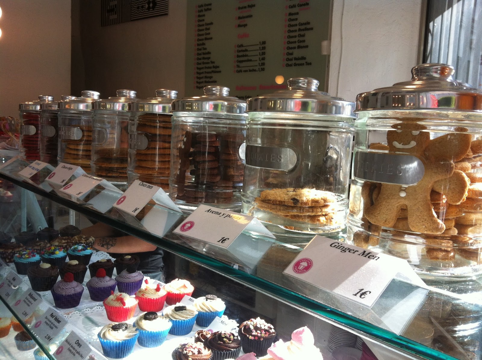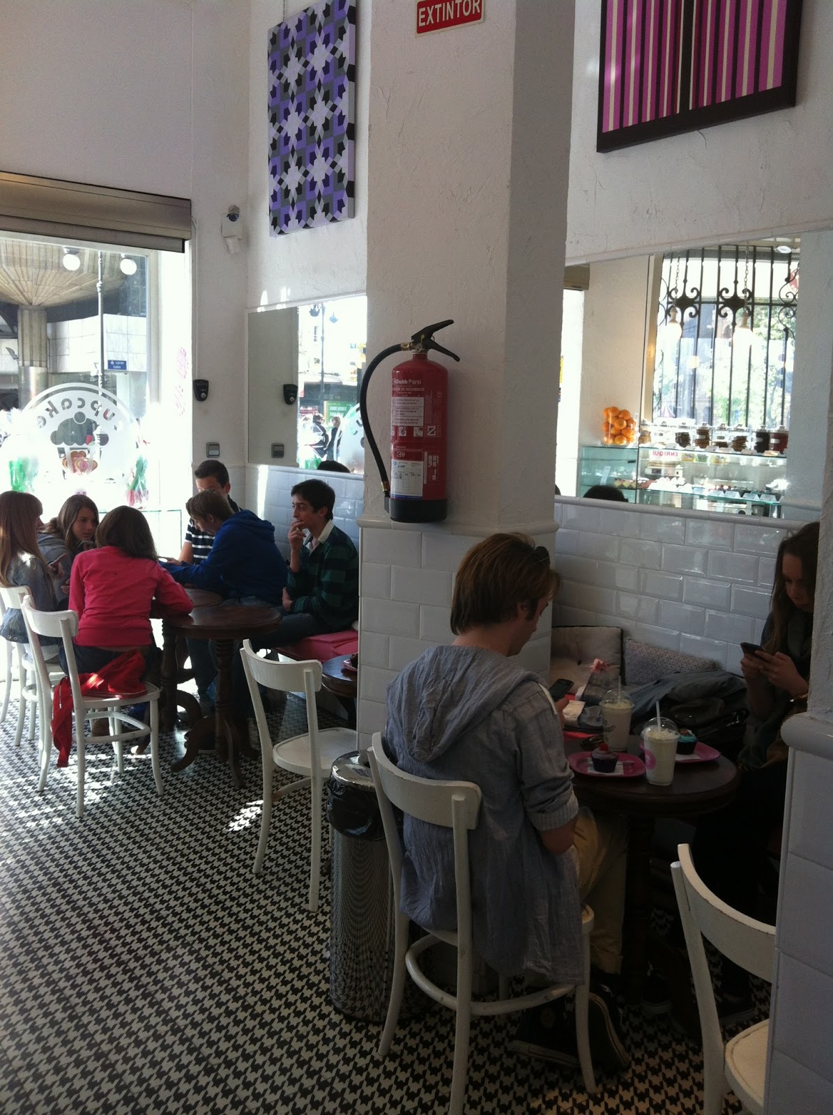 El fin de semana del 19-21/04/13 estuve en Valencia Y bueno, debido a esta afición mía, pues ahora a la hora de planear un viaje hay que tener en cuenta mas cosas: buscar un hotel, buscar el desplazamiento, buscar que ver allí, buscar sitios de cupcakes... Vamos, lo que viene siendo lo típico verdad?. Y así lo hice. La verdad es que no ha sido mi primera vez, la primera vez que hice esto fue en mi viaje a New York, llevé a mi amiga Noe por el camino de la amargura de tienda en tienda... Magnolia Bakery incluida, obiously :-D Así que me puse manos a la obra, a investigar un poco, y encontré dos sitios que visitar. Bueno, encontré mas, sobre todo tiendas, lo que pasa que yo solo fui un fin de semana, y el tiempo no es eterno, además, si llevo a mi chico de un lado para otro de cupcakes, me mata, sinceramente. Así que las tiendas las dejé a un lado, muy a mi pesar (de verdad que lo siento porque me hubiera encantado ir a rosa´s cakes y cupcakes y tartas, cuyo blog sigo incondicionalmente). Pero, a cambio, tuve esto. Primera parada: Cupcake Republik Esta en la Calle Colón Nº2. Como os he dicho, yo no conozco Valencia, pero a mi la sensación que me dió es como si estuviera en la Plaza de Callao aquí en Madrid. El local tiene mucho trasiego, y una pequeña terracita en la calle (a mi no me gusta este tipo de terrazas porque estás en plena acera, que todo el mundo te vé comiendo e, incluso, molestas..., y cerca de la calle, con lo que te comes todos los humos..., pero esto es apreciación particular). El local.... Pues ya lo estáis viendo, es muy cuki? pues no, sinceramente, no nos vamos a engañar, pero tiene su aquel. Me encanta el tema de los cojines en el banco para sentarte, muy original. Me encanta que la vajilla sea personalizada, le da un toque muy chulo. Me gustó mucho el mostrador que tienen, y con tanta variedad, y me parece super original que a algunos cupcakes les pongan nombres originales, en plan Harlem, Bollywood y cosas así. Y llegamos al tema más importante, porque, al final, para mi, es lo que manda, están buenos?. Lo primero que he de decir es que la dependienta fué un auténtico sol, te lo explica todo con una tranquilidad y se la nota que quiere que te vayas convencida con tu bebida y tu cupcake. Y porqué digo esto?, porque yo pedí dos cafés y resulta que les puedes poner aromas y sabores, algo que me ha parecido un puntazo tremendo. Yo donde mas cafés he visto en mi vida es en el Starbucks, bueno, pues no llegan ni a la suela de los zapatos a Cupcake Republik. Como véis en las fotos, pedimos un Harlem (chocolate con frosting de chocolate) y un Drácula (chocolate con frosting de cereza). He de decir que estaban muy buenos, los cupcakes muy jugosos y tiernos. Si he de poner alguna pega, el frosting de cereza no tenía mucho sabor a cereza. Pero muy ricos, en serio. Siguiente parada: American cupcakes Están en la Calle Maestro José Serrano Nº7. Madre mía, que apuro pasé, porque después de llevar todo el día en el Bioparc haciendo fotos con el móvil (ya que la cámara me la dejé en casa, cabecita loca), llegué aquí con 3% de batería, es decir, 5 fotos y... apagón. Pero es que mi chico iba igual, 4 fotos y muerte. Así que el pobre Romel flipó cuando vió entrar a una loca en su local, haciendo fotos como una histérica, que cuando se la acaba la batería se caga en todo lo cagable, que le quita el teléfono a la persona con la que va, y que cuando esa batería también se acaba, por poco se pone a llorar. Todo esto sin decir esta boca es mía. Cuando conseguí calmarme ya le expliqué que tenía un blog, que venía de Madrid y que estaba haciendo la ruta del cupcake por Valencia para hacer un post... Sigo sin entender como no me echó de una patada en el trasero cuando me vió. Bueno, y que es lo que tenemos aquí? pues he de decir que mayormente... Es un taller donde dar cursos, con una sala enorme y muy bien acondicionada. Luego tienen esa zona de tienda que habéis podido ver, donde puedes encontrar cosillas para la elaboración de cupcakes, pero yo pienso que no es su fuerte. También tienen una zona donde venden cerámica, que me pareció super original, con una zona de porta-tartas que me enamoró, y, de echo, uno se vino a Madrid conmigo. Pero sobre todo destaco su zona donde venden cerámica y cosas (alfombrillas de ratón, libretas, etc..) de Mr. Wonderful (daros una vuelta por su web y veréis a que se dedican, son geniales. Yo los conocía de antes por sus galletas) También tienen una zona de delantales, aunque creo que ellos son mas fan de las casacas. Y, por supuesto, también compré algo para probar sus "quehaceres". Está claro que no tienen la misma variedad que en el otro, pero es que creo que la tipología de negocio entre uno y otro es totalmente distinta. Lo primero que me gustó fué la caja donde me dió mis cupcakes, a que es chula?. Me llevé uno de chocolate con frosting de nutella y otro de red-velvet con frosting de queso. Están buenísimos también, tiernos y jugosos, y ese frosting de queso se llevó toda mi envidia, consistente y sin perder la forma, cosa, para mi, harta complicada. American Cupcakes son proveedores del Antique Café, así que allí también podéis degustar sus maravillas. Y eso os cuento, lo que conocí de este sector en el poco tiempo que tuve. Sé que hay mucho mas, pero, como volveré, pues haré otra tourné, para visitar otra vez a estos nuevos amigos, y para hacer nuevas visitillas. Besos viajeros