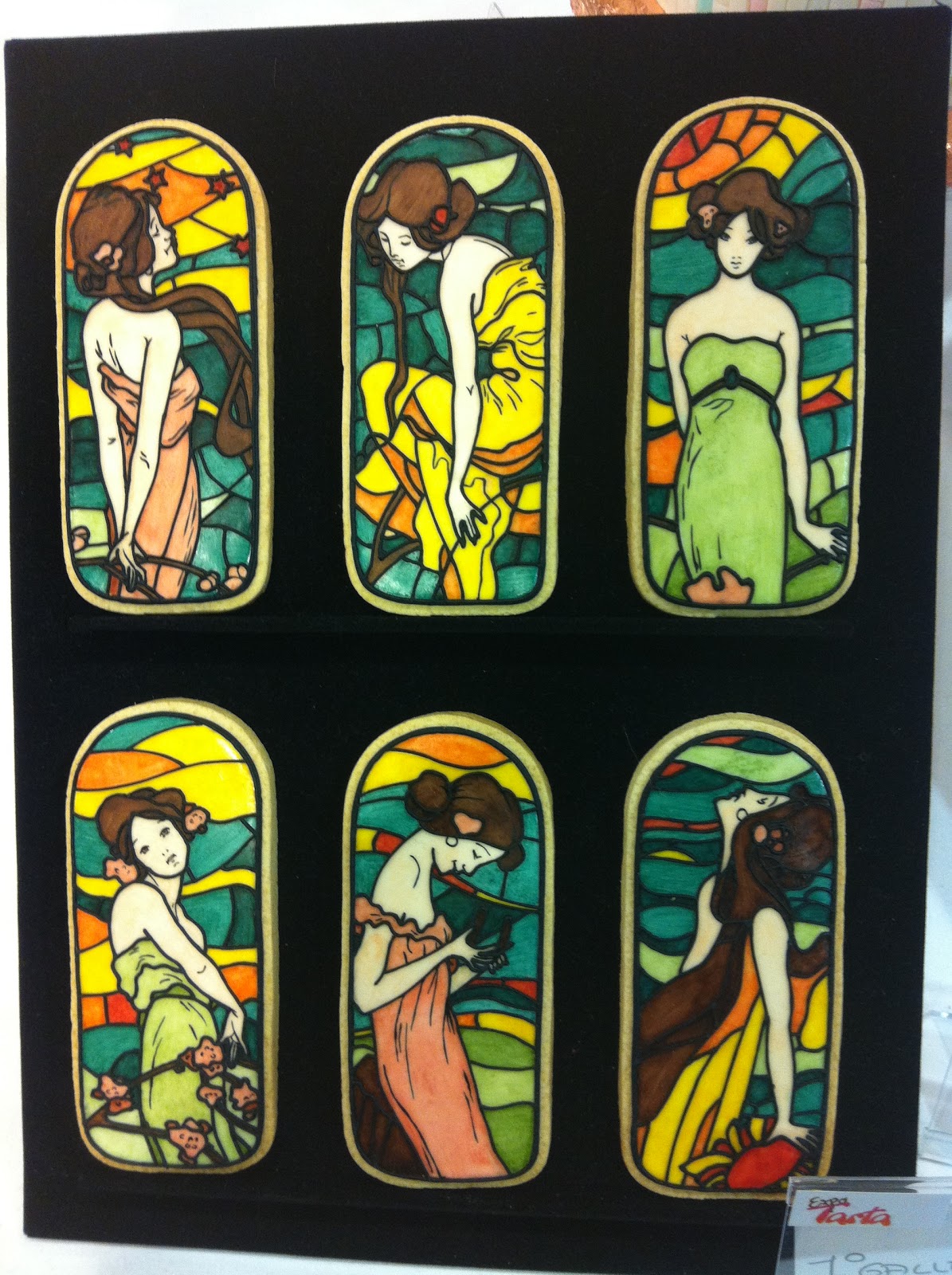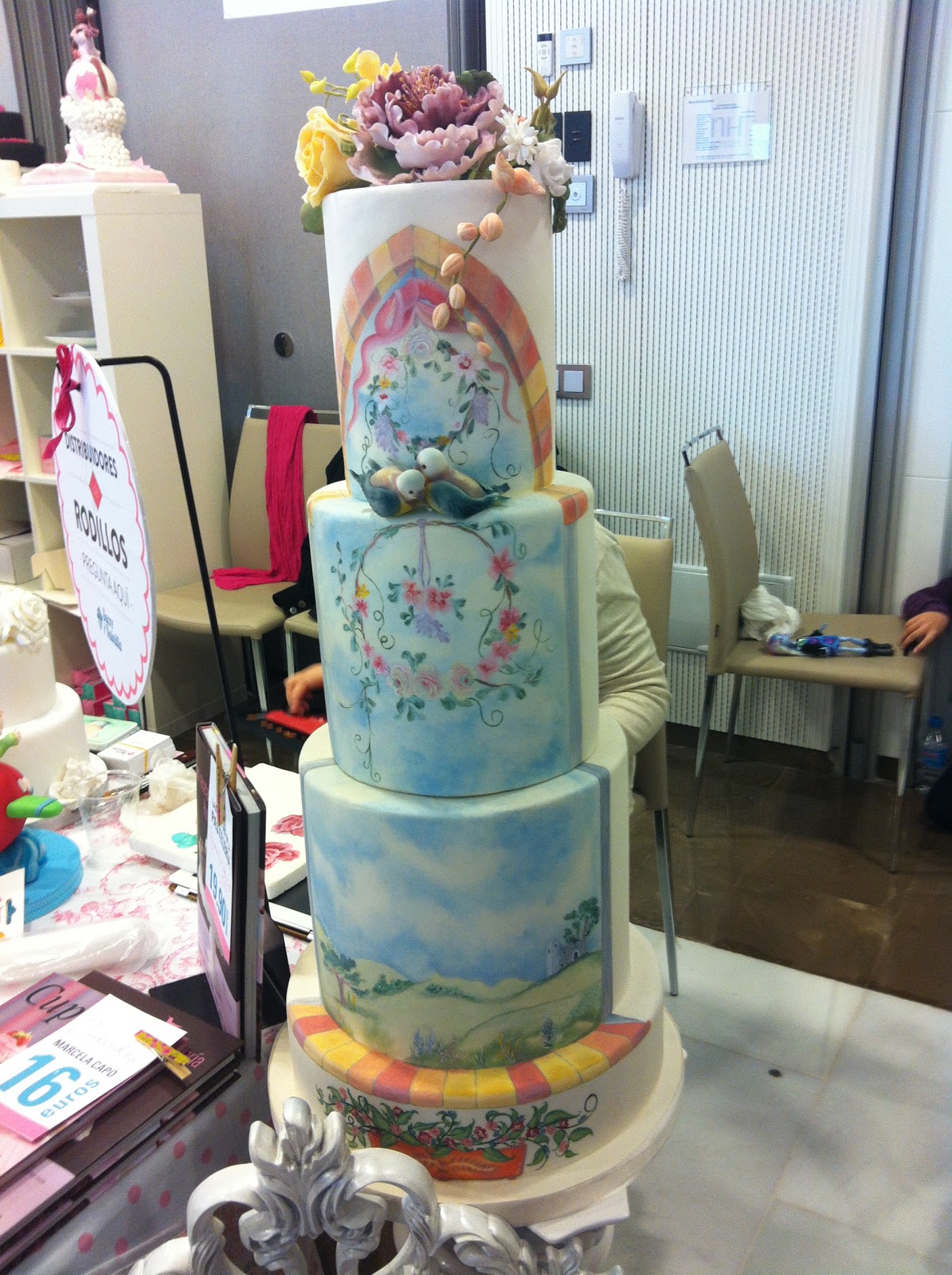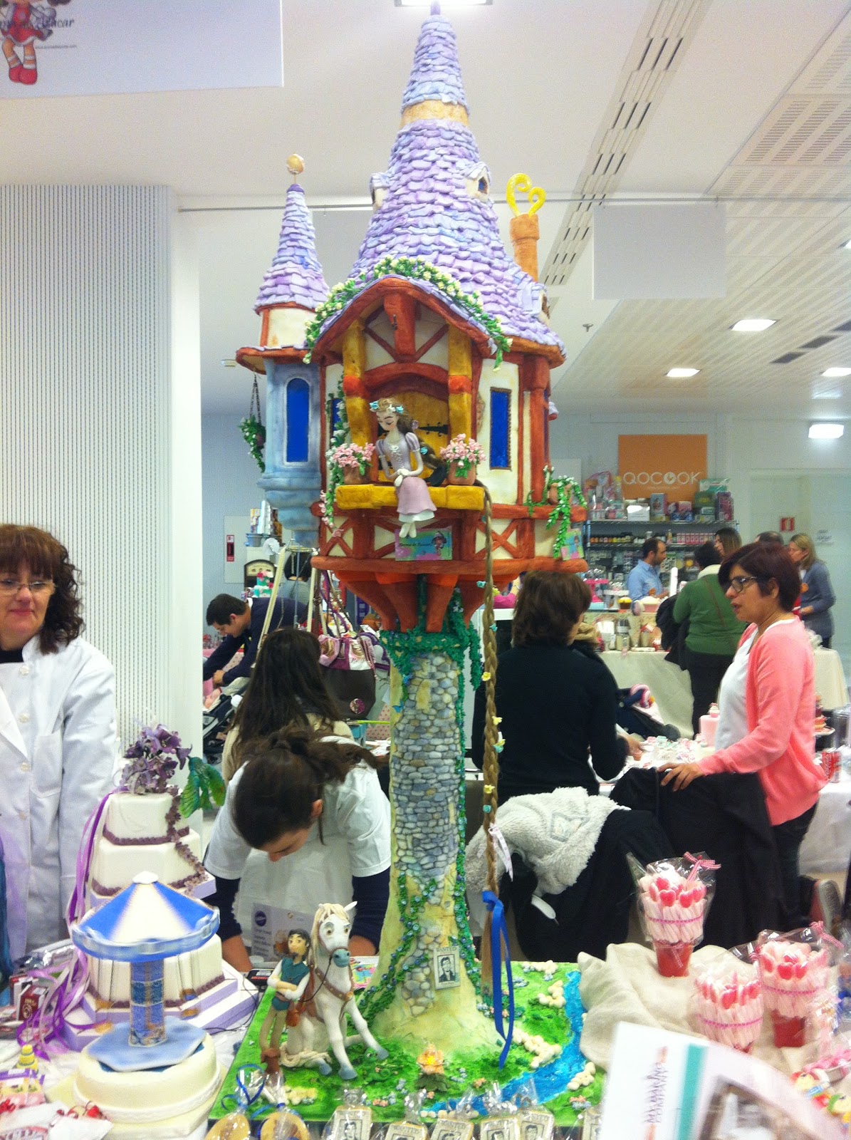 Pero que día mas fantástico, especial y perfecto tuve, y todo, gracias a ellas: De izquierda a derecha son Alba, Mercedes, Yo, Laura y Guiomar. Sé que deben estar hartas, porque lo he dicho por activa y por pasiva: a ellas, en facebook, en nuestro grupo de whatsapp... Pero es que no me canso!!!!!!!!! y al César lo que es del César y a Dios lo que es de Dios. De verdad que no podéis haceros una idea de lo bien que se portaron conmigo, ni una mala cara cuando las hice recorrerse la feria palmo a palmo, al revés, me animaban a que me diera otra vuelta no fuera ser que me hubiera dejado algo; Me quitaron el abrigo cuando entré a la sala, y ya no supe nada mas de él, para que estuviera mas cómoda; si compraba algo, me quitaban la bolsa de las manos para que puediera seguir viendo cosas de arriba para abajo sin impedimentos; me hacían las fotos y con una sonrisa; me pillaron tarjetas y folletos de todos los sitios para que no se me quedara nada en el tintero; me regalaron un montón de cosas... Ellas me dijeron que daba gusto verme, que parecía un niño pequeño, con esa ilusión, los ojos como platos y corriendo de un sitio para otro, señalando todo, felicitando a todos por sus creaciones, y, por supuesto, sin dar descanso al monedero!!!!!!!!, así que esa debe ser mi faceta FAN total, así soy yo. Solo puedo indicar que ha estado muchísimo mejor que el año pasado, mucho mas espacio, mucha mas organización, todo mas disperso para que no hubiera aglomeraciones, las bakerys metidas en un sitio aparte, había muchísimos mas expositores, pero como el espacio era el doble, podías verlos a todos bien y tranquilamente. El tema de las demostraciones gratuitas cada 30 minutos me ha parecido algo muy original y chulo. Sinceramente no puedo decir si el año pasado estaba, yo creo que no. Merece la pena pagar 4€ mas (el año pasado costó 1€ y este año 5€) y tener esta mejora. En fin, que está claro que con la práctica se adquiere la maestría, y se van superndo año a año, estoy deseando ver lo que nos depara el 2014!!!!!!!!!!!!!!!!!!!!!! Y las fotos, bueno, pues os voy a poner unas cuantas, las que a mi me han impresionado mas, el resto las podéis ver aquí, por si alguien se quiere dar una buena ración de vista, que yo con una cámara tengo mas peligro... La reportera mas dicharachera. Aviso, casi 130 fotos Bueno, como adelanto, creo que va bien, que si no, me emociono y.... Telita. el que queira ver mas, que se vaya a mi facebook. De verdad que me siento una amateur total cuando veo estas cosas, por decirlo de manera fina, es impresionante el arte que tiene la gente, y la cantidad de horas que le dedica, porque ahora que tienes una idea de este mundillo, sabes el dinero y el trabajo que cuesta mas o menos una creación, y de verdad que hay algunas para caerse de espaldas. Besos ojipláticos