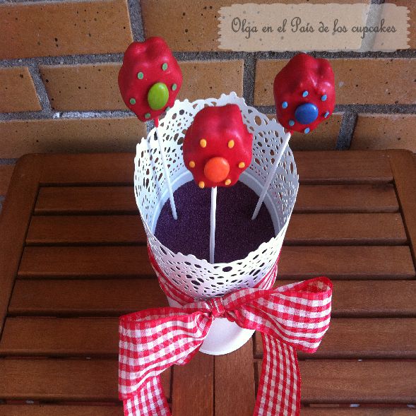 Que estamos en primavera, el calor llega ya y se nota la alteración de la sangre!!!!!!!!!! Después de mis experimentos del otro día, algunas cosas se me quedaron en el tintero, así que yo seguí con mis indagaciones, porque sabía que hasta que no me quitara esas cuestiones de la cabeza, no iba a parar, siempre me pasa lo mismo, es lo genial de conocerse a una tan bien, verdad?. Así que he aprovechado que ya huele a esta maravillosa estación y les hemos dado un poco de forma a estos cakepops, que no se diga, verdad? Después de mis últimos experimentos me he decantado por diluir los candy melts con aceite de girasol. Es cierto que al utilizar estas cosas para hacer los candy melts mas líquidos tardan un poquito mas en secarse, pero es un punto que, si los vas a decorar, hasta te viene bien, solo hay que tener cuidado de que no se rocen unos con otros, dejarlos bien separados sacándose y listo. La forma de flor de estos cakepops están hechas con un cortapasta. Se coje la misma cantidad de masa, unos 25 gr, y en vez de darle forma de bola, lo metes en el corta pasta y aprietas con los dedos para que se adapte bien. Se retira el cortapasta, el cakepop al frigo y... Listo. Lo único que hay que tener en cuenta es que sea un cortapasta de tamaño adecuado, porque, si es muy grande, la forma te puede quedar muy fina y a la hora de clavarle el palo o cubrirlos con los candy melts se te pueden romper, y si es muy pequeño, no te entrará toda la masa en el cortapasta así que quizá no se quede muy bien con la forma. La decoración de estas flores es la siguiente, el centro son lacasitos, y lo que está en los pétalos son sprinkles de cofetti de colores. Por los dos lados llevan la misma decoración. Como dije en esta entrada, esta parte es la buena de que tarde un poco mas en secarse, ya que si se te endurece muy pronto el chocolate, estas cositas no se pegan y al final no lo puedes arreglar. Esta vez lo que practiqué mucho fue le tema de sacar los cakepops del frigo con tiempo suficiente para que se atemperen bien antes de bañarlos en los candy melts, porque sino, cuando el chocolate se enfría, si el cakepop se empieza a expandir porque empieza a entrar en calor, se rompe la cobertura y la decoración ya... A tomar viento. El tiempo adecuado, creo yo, son 15 minutos. El doble baño deja una cobertura mas homogénea, porque aunque el primer baño, al estar los candy melts mas líquidos, se notan mucho mas las grietas de las bolas de bizcocho, con el segundo todo eso se quita y queda mucho mejor. Si, estoy contenta con mis experimentos, he aprendido mucho del trabajo con estas materias primas. Por cierto, el sabor, pues ya sabéis... chocolate!!!!!!!!!!!!!! menuda sorpresa viniendo de mi verdad? el próximo experimento será a ese respecto, sabor, ya que yo siempre ligo el bizcocho con queso philadelphia para rebajarle un poco el dulzor, ya que luego va cubierto de chocolate. Quiero probar el sabor de bizcocho ligado con frosting... Será una bomba de azúcar? ya os contaré.Y siiiiiiiiiiii.... Ya esta aquí!!!!!!!!!! ya llegó!!!!!!!!! EXPOTARTA!!!!!!!!!!!. Este fin de semasan es la feria de la repostería creativa en Madrid, en el Hotel NH Eurobuilding, con entrada de 10:00 a 21:00. Cuesta 5€ entrar. Hay stands, tiendas, exposiciones y concursos de creaciones (tartas, galletas, cupcakes...), cursos, en fin, una cantidad de cosas ingente. Yo ya estuve el año pasado y me quedé totalmente alucinada, así que este año no me lo pierdo. Haré millones de fotos y ya os lo contaré todo-todito-todo. Besitos dulces.