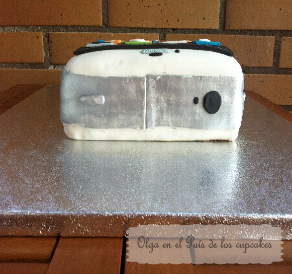 Puedo asegurar y aseguro que esta tarta me ha llevado por el camino de la amargura Es verdad que ha sido todo un reto, para un cumpleaños muy especial, un amigo que cuando le preguntaron "que quieres para tu cumpleaños?" él dijo "una tarta de Olga, el resto me da igual, pero quiero una tarta de Olga". Con respecto a la temática de la misma hubo bastante cachondeo entre el resto del grupo, y al final nos decantamos por un teléfono móvil ya que llevamos toda la vida diciéndole que se tenía que comprar uno y el se nos resistía, no quería, hasta ahora, que a falta de uno, ha tenido dos, regalo de cumple de sus papis y en formato tarta. Aquí os dejo las fotos para que lo veáis mas de cerca: Yo creo que no le falta detalle, verdad?. Ha sido mi primera experiencia trabajando en miniatura y he de decir que... Agüita!!!!!!!!, he jurado en arameo, pero he de reconocer que he aprendido muchísimo, cada vez que hago algo así me doy cuenta de lo que es la práctica... En un principio iba a tener nada mas que dos filas de apps, y en el centro de la pantalla un mega lazo enorme azul como si fuera para regalo. Pero una vez que estuvo montada... No me gustó nada!!!!!! no veáis el disgusto, llorando a moco tendido, así que pedí consejo a mis amigas Gemma y Guiomar, y Gemma me dijo que lo que la chocaba era un lazo para un chico, que por mucho que fuera azul y tal, si que es cierto que... Como que no pega, no?, me dijo que lo dejara quitado y listo. Pero así tampoco me gustaba porque la pantalla me parecía sosa, así que le hice otra fila de apps, y por último, me dí cuenta que el nombre encajaba a la perfección en la pantalla así que también lo puse. Y el resultado final es el que habéis visto. Así que, como habéis leído, ha sido una tarta de grupo totalmente. Ya sabéis que mi máxima es no tirar nada, con lo que ahora lo que me sobraba era el lazo. Bajé un poco la tarta en la bandeja, y puse el lazo en la parte de arriba, y quedó así: Aún así yo veía como que faltaba algo... Por los lados... Lo veía muy desangelado... Como el molde que utilicé para hacer el bizcocho era una fuente de pirex, los bordes de la tarta quedaron muy redondeados, así que recorte toda esa parte para dejar el teléfono mas rectangular y que fuera mas realista. Con esos recortes, hice nos cakepops. Desmigué el bizcocho, lo ligué con queso philadelphia, hice bolitas que dejé enfriar en el frigo de un día para otro, y luego los puse en papelitos de trufas, los rocié con candy melts de colores y los decoré, unos con forma de flor y otros con sprinkles de conffeti de colores. Y los puse a los lados de la tarta, así le daban un toque mas de fiesta que yo quería y los utilizamos para poner las velas. El resultado final fue este: Bueno, la tarta fué un auténtico éxito, tanto visual como al paladar. El bizcocho quedó super jugoso y el Swiss Merengue Buttercream también le dio mucho jugo al ser un relleno húmedo. La tarta era de chocolate relleno de swiss merengue buttercream de nutella. La receta del bizcocho es esta, es un bizcocho que de por sí queda muy jugoso, yo es el que utilizo siempre. Pero es que además yo lo empapé con un poco de almíbar. Para el relleno hice la receta de SMB y añadí nutella hasta que dije basta, 4 cucharadas colmaditas creo. Pues con esta tarta participaré en el concurso-sorteo del blog de Recelandia, tenéis que pasaros por ese blog, Esmeralda hace cada delicia de llorar por ver esos manjares y no poder probarlos... Así que... Desearme mucha suerte!!!!!!!!!!!!!!! Un dulce besín.