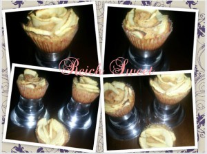 Me encanta la manzana y sobre todo si es con canela, no lo puedo evitar es un amor incondicional el que siento por esta mezcla, así que ayer me puse a improvisar y cree estas delicias de manzana.Había visto por internet alguna decoración así y tenía que probarla. La receta es algo distinta a las que ví en otros blogs y no la puedo comparar pero si deciron que me salieron buenísimos, hice solo masa para 9 minicupcakes y ya solo queda uno que tengo guardado para mi postre :)INGREDIENTES60 ml de aceite de oliva suave60 gr de azúcar moreno1 huevo mediano100 gr de harina para bizcochos1/2 manzana partida en trocitos pequeños y 1 manzana en laminas para decorar.1 cucharadita de canela1/2 cucharadita de levadura PREPARACIÓNLo primerito ponemos nuestro horno a precalentar a 180º y preparamos nuestras capsulas para cupcakes.Ahora mezclamos los ingredientes secos en un bol, harina, levadura y canela, los reservamos.Ponemos en otro bol el aceite con el azúcar moreno y mezclamos bien. Cuando ya está añadimos el huevo y lo seguimos mezclando.Ahora le añadimos nuestra manzana en trozos y la mezcla de ingredientes secos, esto último lo hacemos poco a poco para que se vaya integrando bien la masa.Cuando ya lo tenemos, echamos en nuestras casulas la masa y ya sabéis no llenamos mas de 2/3.Para la decoración, antes de meter la bandeja en el horno, partimos manzana en laminas finas y las ponemos sobre nuestra masa.Ahora sí todo al horno unos 15 minutos.NOTA: yo solo hice 9 minicupcakes que es lo que sale con la receta que os doy, si quereis hacer más simplemente con duplicar la cantidad que os pongo os saldrían el doble de minicupcakes o unos 6-8 cupcakes.Que disfruteis del día.Gracias por pasar por aquí.Besitos mil