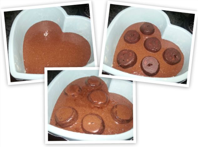 Buenos dias, el bizcocho que traigo hoy esta muy rico y es muy facil. Ayer no fui capaz de llegar, pero es que en casa con Lucía malita es imposible hacer nada que no sea atenderla y encontré el momento de sentarme delante del ordenador. Pobre nada mas que quería que estuviese pegada a ella.Hoy aunque sigue malita ya la he dejado con su abuela y yo puedo compartir con vosotros este riquisimo bizcocho. INGREDIENTES3 huevos1 yogur de fresa2 medidas de azucar2 medidas de cacao en polvo1 medida de harina1 sobre de levadura1/2 medida de aceite PREPARCIÓN Batimos los huevos junto con el yogur hasta que los huevos empiecen a estar en punto de nieve. Luego añadimos el azúcar, la harina y lo último la levadura. Pero integrando poco a poco cada cosa para que se integren perfectamente. Una vez que lo tenemos cubrimos el fonde del molde y colocamos nuestros donettes. Cubrimos con el resto de la mezcla. Ahora podemos ponerlo en el horno unos 30-40 minutos a 180 o hasta que lo pinchemos por el centro y salga limpio. También se puede hacer en el microondas poniendolo 7 minutos a temperatura máxima, lo dejamos 5 minutos sin abrir el horno y después lo pinchamos, si aun no está hecho lo ponemos otros 3 minutos y así hasta que al pincharlo salga limpio. Lo dejamos enfriar y para decorarlo utilicé chocolate blanco y negro derretido en el microondas con un chorrito de sirope de fresa.El efecto que queda al secarse y el sabor es parecido al del chocolate de los donuts fondant. BUENISIMO. Aquí lo tenéis con la sorpresita de los donettes. Bueno pues hasta aquí la entrada de hoy. Feliz Martes Muchos besitos