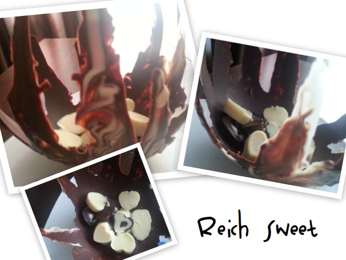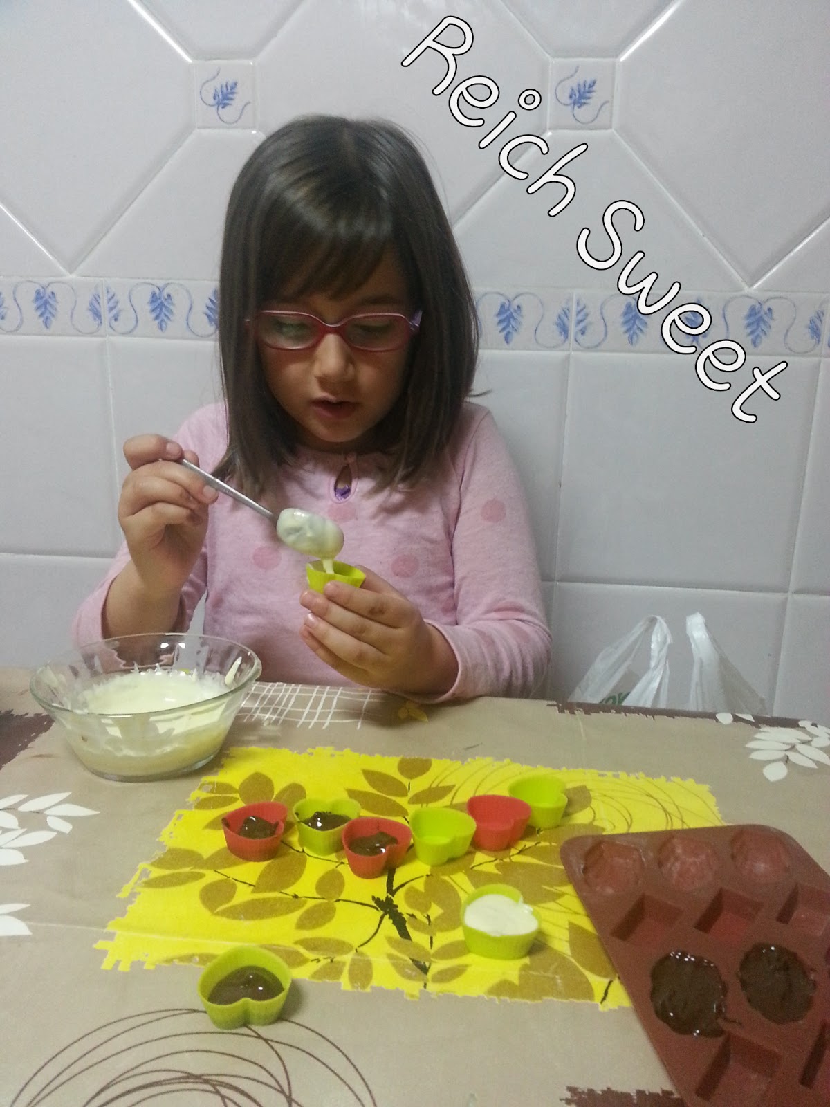 Buenos días, hoy es el día del padre y como tal mi pequeña le quería hacer un regalo especial a su padre, pero no solo especial si no hecho por ella, así que nos pusimos a pensar y de las opciones que la dí la que mas le gustó fue hacerle una cestita de chocolate con bombones, así que nos pusimos manos a la obra y queda tan chulo que lo comparto con vosotros.La idea de la cesta la vi por facebook hace algún tiempo y me pareció superchula para poner fruta, caramelos, chuches... cuando viene alguien a comer o cenar a casa, para el momento café es perfecto.Para hacer nuestra cesta necesitamos:1 globoChocolate blancoChocolate negroPara hacerlo hay que inflar el globo y ponerle algo de aceite o mantequilla para que luego nos sea más fácil despegar la cesta del globo.Ponemos el globo en un cuenco donde se quede sujeto y empezamos a echarle el chocolate sin miedo, que quede bastante grueso para que sea más consistente.Una vez echado el chocolate negro, pasamos al blanco para decorar nuestra cesta.Una vez acabado lo metemos en la nevera para que se solidifique el chocolate. Lucía mientras rellenó los moldes para los bombones que hirían en la cesta.Cuando ya está sólido el chocolate quitamos el nudo del globo y lo vamos deshinchando poquito a poco porque es muy delicado y se nos puede partir, de hecho a nosotras se nos rompió el primero y tuvimos que repetir toda la operación, pero el segundo quedó perfecto.Es fácil y queda muy chulo, a su padre le ha encantado. Feliz día a todos los padres, Josés, Josefas, ... y también a los valencianos.Besitos y gracias por pasar por aqui.