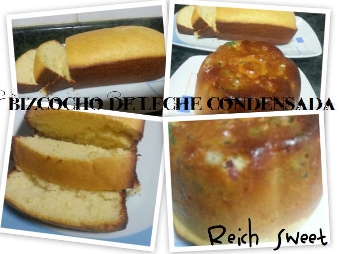 Estos días que estoy malilla me apetecía mucho un bizcochito con un café calentito que siempre levanta el ánimo, así que me decidí hacer una receta que llevo tiempo queriendo hacer y es que me encanta la leche condensada, es más mi café preferido es el Bombón, adivinais por que???... exacto, café calentito con un buen chorro de leche condensada que va directa a las caderas :)Este bizcocho está muy suave aunque no es precisamente bajo en calorias, pero queda esponjoso y muy rico.Vamos a ello. INGREDIENTES370gr de leche condensada 120 gr de harina ½ sobre de levadura 50 gr de mantequilla 4 huevos PREPARACION Ponemos el horno a 180º para que se precaliente. Echamos la lecha condensada y le vamos añadiendo los huevos uno a uno, para ir integrandolos bien. Una vez que lo tenemos añadimos la mantequilla a temperatura ambiente y si está muy fría la derretimos un poco en el microondas en modo descongelado. Batimos bien para que se integre y vamos añadiendo la harina tamizada y lo último la levadura. Preparamos nuestro molde y echamos la mezcla. Como mi molde rectangular es muy pequeño me sobraba masa, así que le añadí unas frutas escarchadas que me encantan en otro molde más pequeño. Metemos nuestro bizcocho en el horno, a 180º unos 30 minutos, yo lo puse solo abajo y el resultado ha sido estupendo. Listo, ahora a disfrutarlo. Está buenísimo. Gracias por pasar por aquí. Besitos