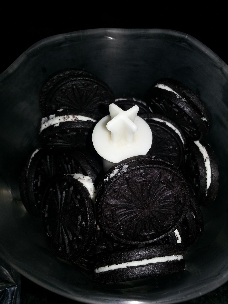 Este fin de semana ha sido muy especial, había un concierto de un Cantator que me encanta Luis Ramiro, era en la discoteca Joy de Madrid y estaba completamente lleno.Para este evento tan especial vino una personita muy especial desde Mallorca para disfrutarlo conmigo y como no podía ser de otra manera investigué sus gustos y le preparé como sorpresa de bienvenida una tarta con uno de sus personajes preferitos, Sparky de la película Frankenweenie. Como también sabía que muere por las galletas Oreo era fácil saber como sería su tarta.INGREDIENTESGRUPO 1 - 100-120 gramos de galletas marca Oreo, las machacamos- Mantequilla: 45 gramos, hay que fundirlaGRUPO 2- Agua bien caliente, 4-5 cucharas grandes- Limón, unos 15 ml de zumo- Gelatina en polvo: 1 cuchara normal GRUPO 3- Queso en crema, 200 gramos- 50 mililitros de leche- Azúcar blanca, 55 gramos- Extracto de vainilla, una cucharadita- Nata montada, 275 mililitros- Un par de paquetes de galletas Oreo, necesitamos para cubrir y decorarPREPARACIÓNElegimos el molde para nuestra tarta, lo ideal es que sea desmontable, podemos forrarle el fondopara que no se pegue.Mezclamos muy bien todos los ingredientes del primer grupo de ingredientes, y con esta mezclallenamos todo el fondo del molde. Lo dejamos enfriar un rato. En una cazuela ponemos todos los ingredientes del grupo 2 de ingredientes, y lo calentamos al bañoMaria hasta que se disuelva todo. Lo apartamos a un lado cuando todo esté bien disuelvo, pero lomantenemos caliente para que no se ponga duro.En un recipiente ponemos todos los ingredientes del grupo 3 y los mezclamos hasta formar unamasa cremosa, una vez mezclados lo mezclamos con la gelatina. Una vez hecho, le añadimos la natamontada y lo guardamos en la nevera.Ponemos una primera capa de la mezcla de queso sobre la base. Seguimos alternando capas conlas galletas Oreo en trozos gruesos y la mezcla de queso que hemos preparado, hasta que no nosqueden más crema ni galletas.Una vez terminada, recomendamos guardarla en el frigorífico varias horas, para que solidifiquebien la tarta.Podemos decorar la tarta por encima con las galletas que trituramos en polvo al empezar, paradarle más sabor aun. Como ésta era una tarta especial, preparé una buttercream de queso para decorar y cree unas figuras de la película Frenkenweenie.Aquí os dejo unas cuantas fotos del resultado final. Gracias por pasar por aquí.Besitos