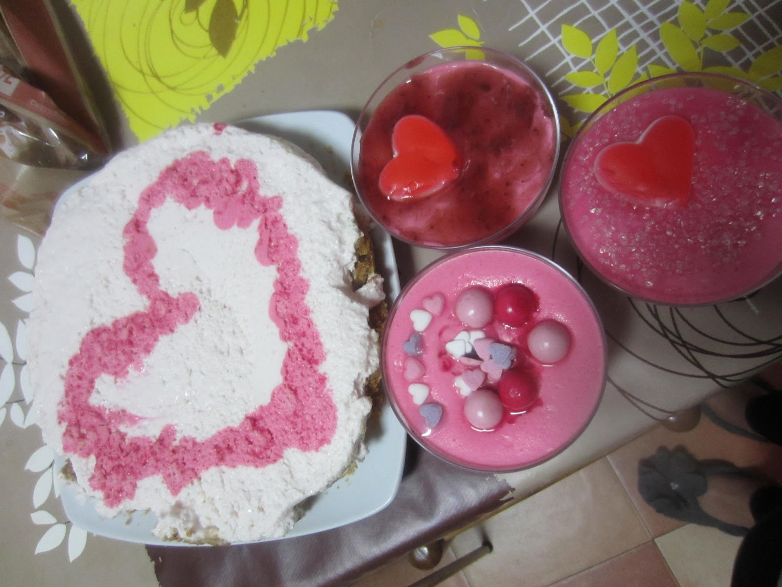 Buenos y felices días, lo primero son los agradecimientos, porque ayer gracias a El Club del Zampabollos mi facebook empezó a tener afluencia. Me sorprendo muchisimo descubriendo gente tan maravillosa que siempre está dispuesta a ayudar.Otra alegría ha sido que después de dos meses sin mi teléfono móvil por fin alguien ha decidido solucionarmelo y me mandan uno nuevo... yuhuu... que felicidad!!!Y ahora a lo que vamos, hoy traigo un postre muy rosa, muy dulce, muy amoros... vamos muy San Valentin total.Aquí os dejo la recetilla:INGREDIENTES6 petit suisse de fresa 200 ml de nata para cocinar1 vaso de leche entera4 cucharadas soperas de azúcar blanco2 laminas de gelatina neutra1 paquete de galletas tipo Digestive 2 cdtas de mantequilla sin salPREPARACIÓNPrimeo vamos a preparar la base de la tarta con las galletas y la mantequilla. Trituramos las galletas hasta que queden como una especie de pan rallado y lo ponemos en el molde que vamos a utilizar, a continuación le agregamos la mantequilla previamente derretida en el microondas y formamos la base. Tiene que quedar sin grietas porque si no al echar después la masa se puede romper.Ya tenemos preparada nuestra base aunque hay quien la mete unos minutos en el horno para que se endurezca algo mas.Pasamos a preparar nuestro relleno. Pornemos en una cazuela la mitad del vaso de leche, el azúcar y la gelatina previamente deshidratada y lo dejamos cocer 1 o 2 minutos, hasta que se disuelvan completamente la gelatina y el azúcar. Cuando ya esten disueltos quitamos del fuego y añadimos el resto de la leche fría. Reservamos.En un bol ponemos los petit suisse y la nata y los batimos hasta que esten bien mezclados.Ahora añadimos la leche con la gelatina y seguimos batiendo hasta que se integre todo bien y ya tendremos el relleno hecho.Lo volcamos en el molde con cuidado de que la base de galletas no se nos rompa.Esta tarta hay que dejarla minimo cuatro horas en la nevera pero lo mejor es de un día para otro.Para la decoración dejé un poco de relleno y lo teñí de un rosa mas fuerte con colorante wilton y así hice tres vasitos individuales y dibujé un corazón en el pastel grande.Recomendaciones... utilizad un molde desmoldable y no como yo que me cargué el pastel al desmoldarlo... con lo mono que estaba!!!Como veis en los vasitos pequeños utilicé chuches y en uno mermelada de fresa. Pues listo, a disfrutar!!!