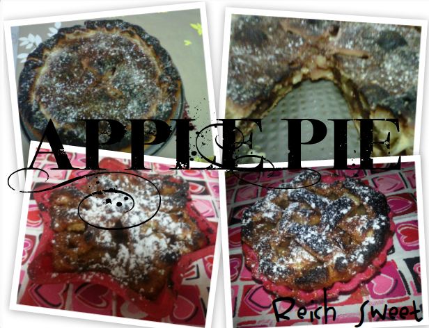 Si hay algo que me guste, eso son las manzanas, cualquier postre hecho con manzanas me parece increible y si ya le incluyes canela, madre mia... me encanta!!!Así que no podía dejar de hacer una apple pie y aquí os la traigo.INGREDIENTESMasa quebrada3 manzanas golden grandecitas o 4 medianasCanela75 gr de azúcar moreno75 gr de azúcar blanquillo50 gr de harina1 pizca de sal MantequillaPREPARACIÓN - Mezclar en un bol grande harina, azúcar, canela y sal. Dejalo reposar.- Cortar las manzanas a láminas. Echarlas en el bol y mezclar con los ingredientes anteriores.- Poner una primera capa de manzana en el molde y espolvorear con canela. Poner unos dados de mantequilla. Repetir la operación poniendo el resto de la manzana en una segunda capa.Volver a espolvorear con canela y poner más dados de mantequilla. - Cubrir con el resto de masa extendida, cerrar y sellar bien los bordes. Pincharligeramente la superficie, decorar y pintar con huevo batido. puedes decorarla como en lafoto.- Hornear a 200º durante 1 horaHay quien le echa nuez moscada o pasas, eso ya es al gusto.A disfrutar, porque está deliciosa!!!