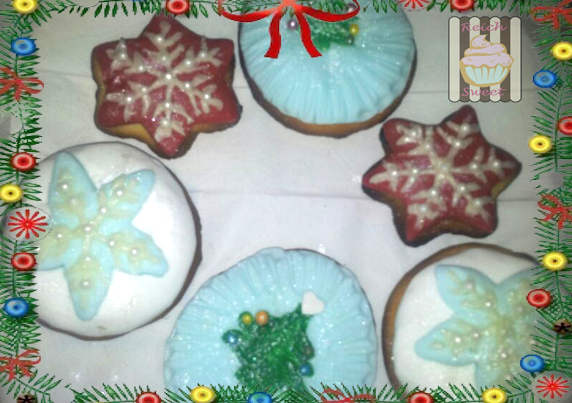 Hoy traigo unas galletitas muy navideñas, aun no me había atrevido a hacerlas pero casi me han empujado ha hacerlo, porque son un encarguito para un regalo de empresa, así que decidí que las haría y no es por modestía pero creo que para ser mis primeras galletas navideñas no me han salido nada mal.No me podía negar, no solo por la oportunidad de que alguien confiase en mi y en mi trabajo, si no porque la Navidad es una de mis epocas del año preferidas, las luces, los villancicos, la ilusión con la llegada de los Reyes Magos de Oriente. La receta para la masa es la que tenéis en Galletas Decoradas y para decorarlas he utilizado Ready To Roll Icing de Rensshaw y Icing de Wilton, además de un poco de purpurina Edible shimmer en blanco perlado.Aprovechando que he hecho estas galletitas, he decidido participar en la segunda edición del concurso "Tu mejor galleta navideña" organizado por Ingrid de My Lovely Food.He visto ya lo que han hecho algunas participantes y hay verdaderas maravillas! pero...LO IMPORTANTE ES PARTICIPAR!Os animáis! Tenéis tiempo hasta el próximo 30 de diciembre!Un abrazo fuerte a todos!